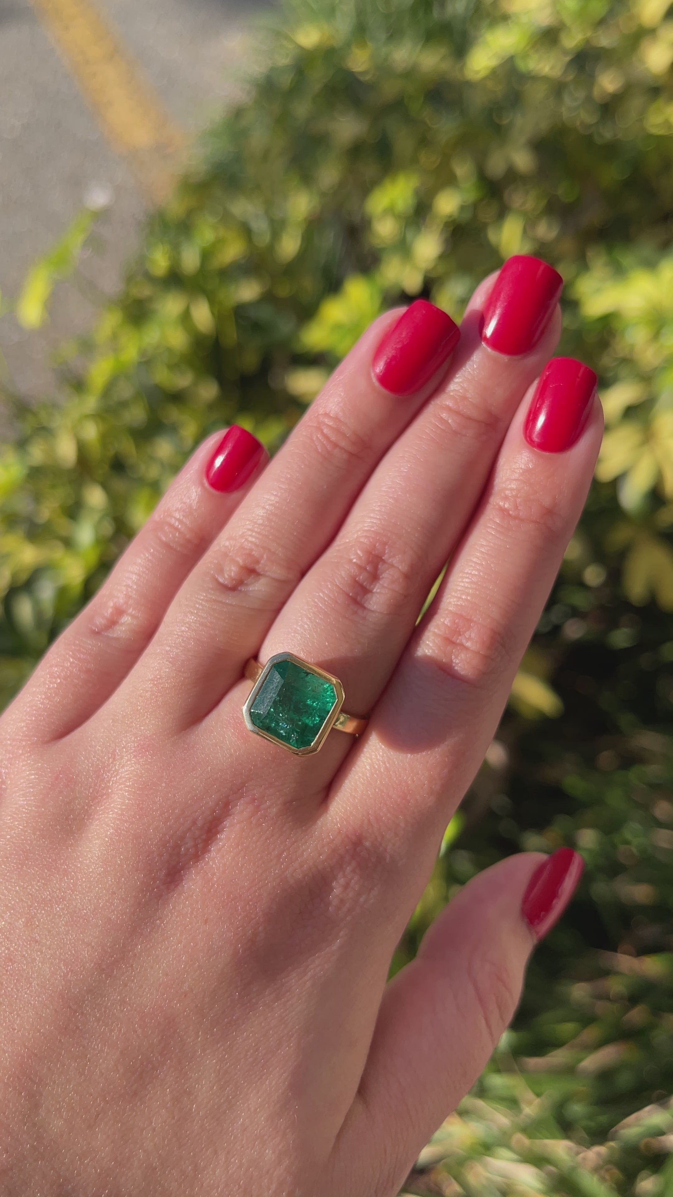 Embrace the enchanting allure of our Emerald Solitaire Ring, featuring a magnificent 6.08-carat asscher-cut emerald sourced from the verdant landscapes of Zambia. Set in a secure bezel of rich 18k yellow gold, the emerald unveils a captivating dark forest green color with semi-transparent clarity, creating a harmonious fusion of opulence and sophistication. This timeless piece celebrates the natural beauty of the emerald, offering a bold and elegant statement for those who appreciate the extraordinary in every detail.