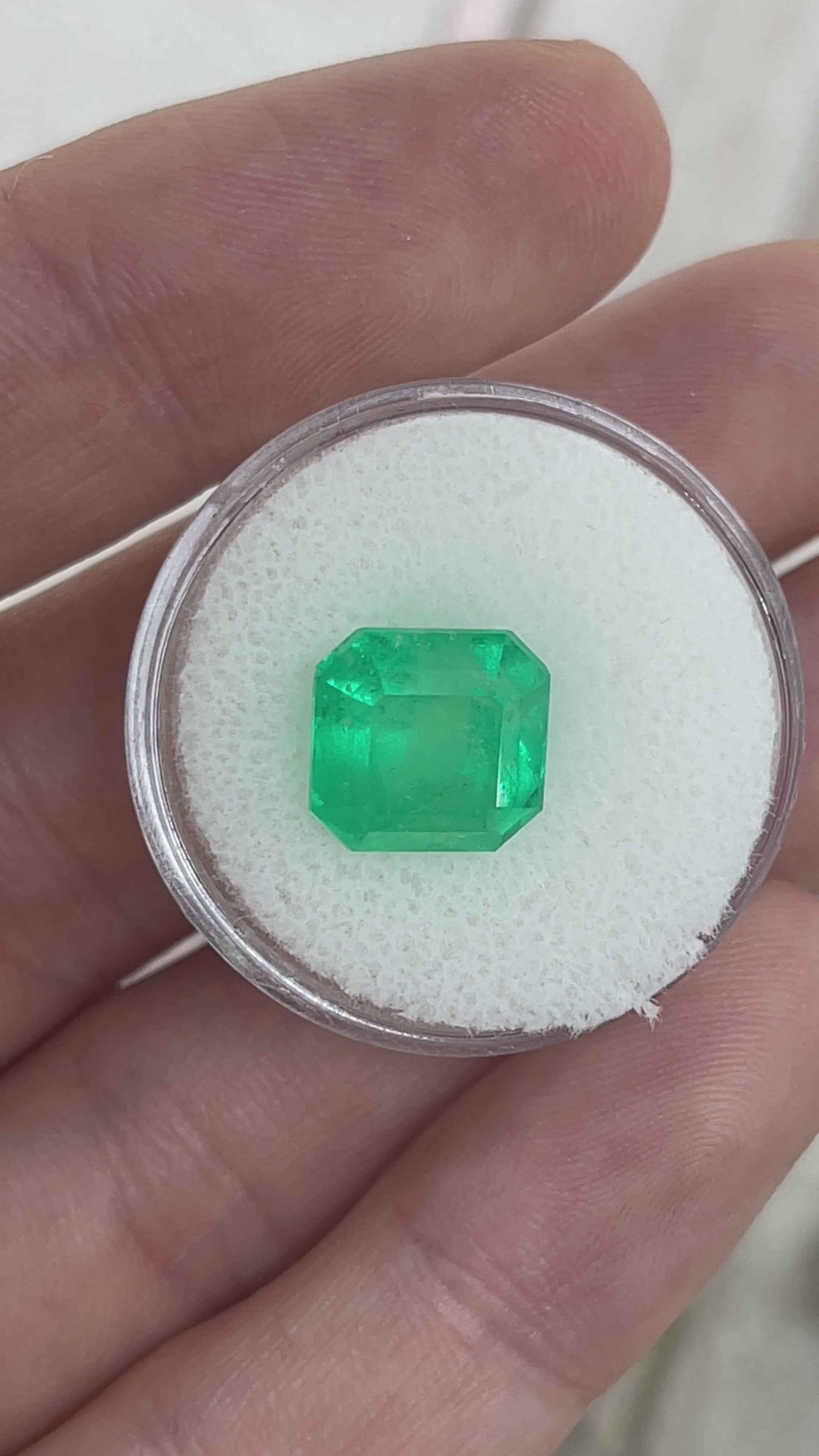 6.19 Carat 10x10 Medium Neon Yellowish Loose Colombian Emerald-Asscher Cut