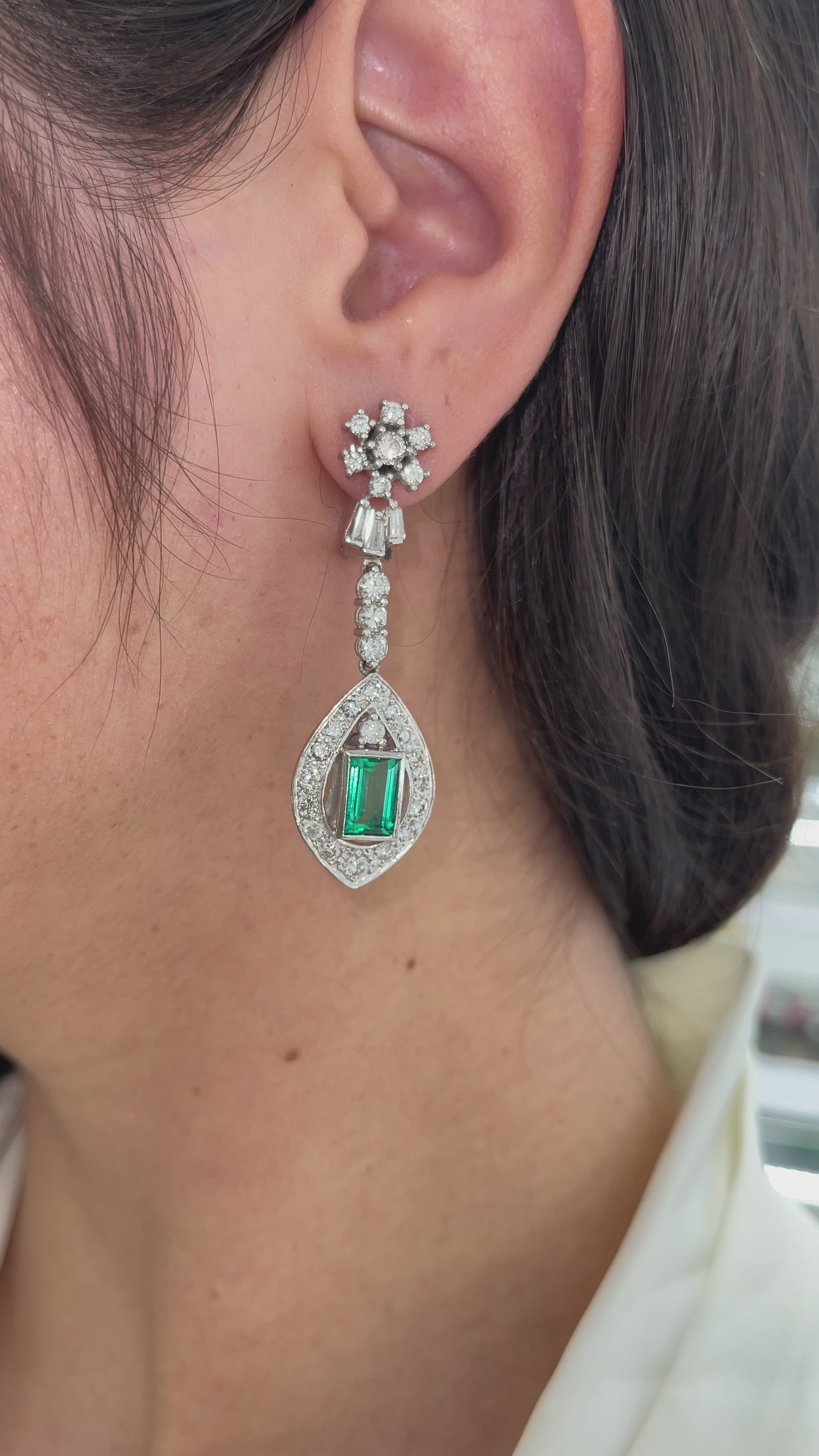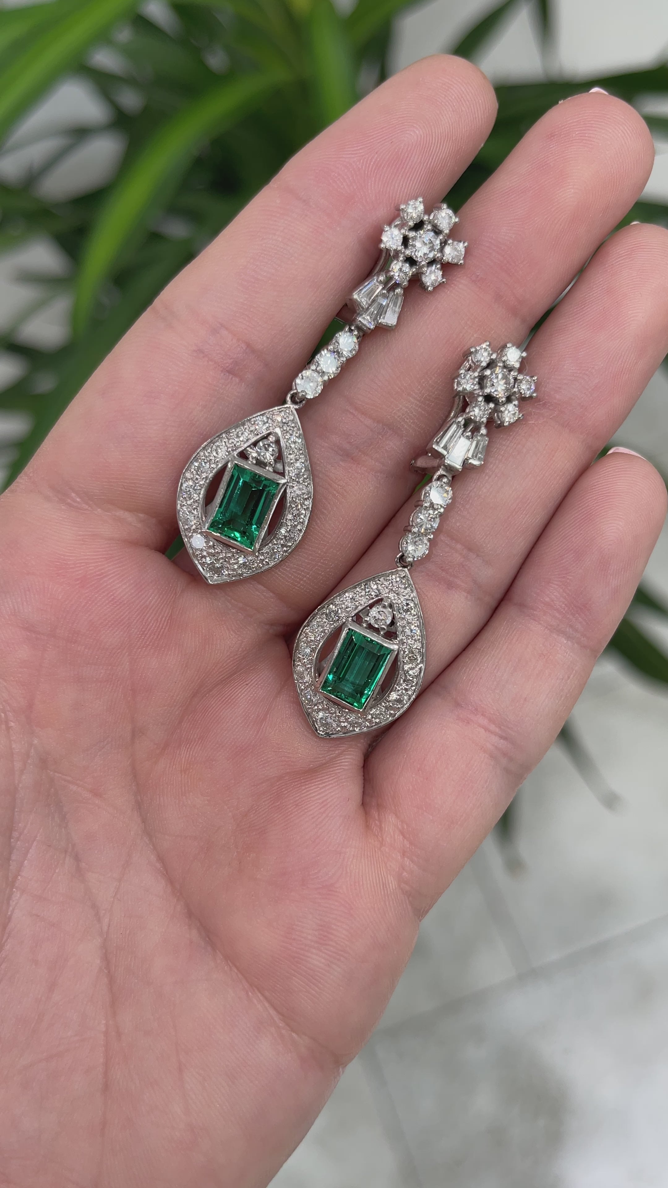 6.20tcw Art Deco Colombian Emerald & Diamond Dangle Earrings 18K