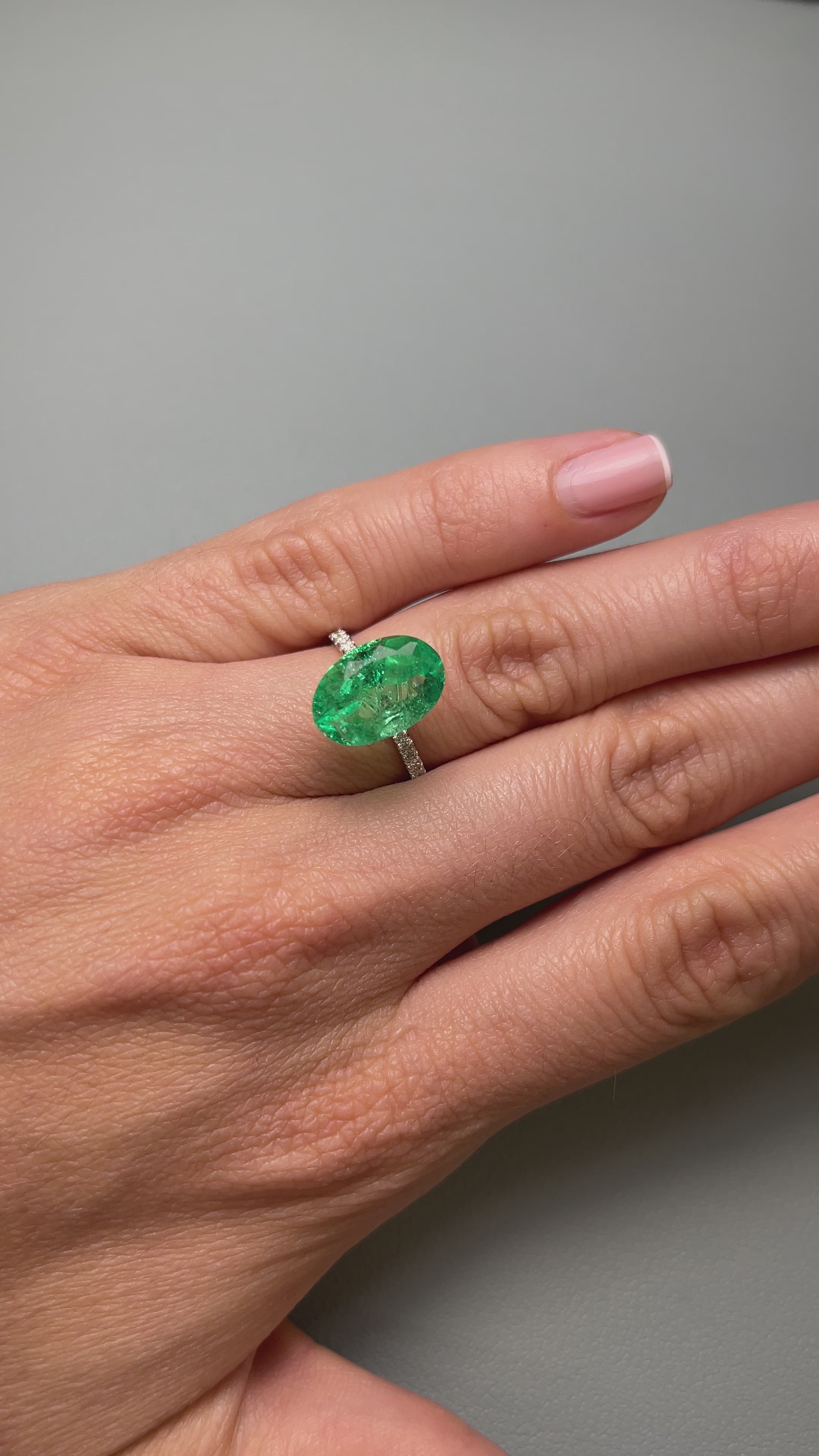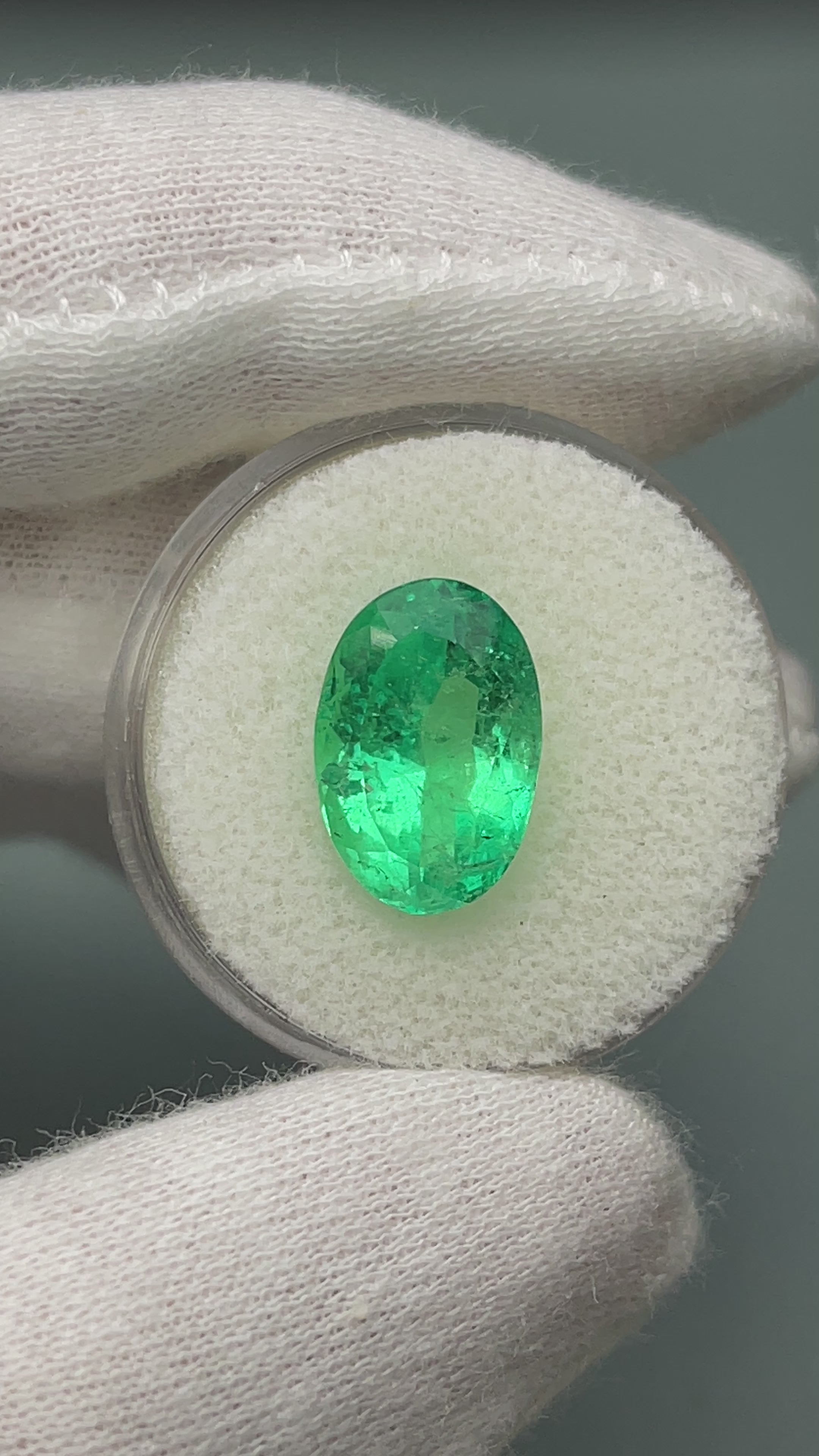 6.23 Carat Elongated Yellowish Green Natural Loose Colombian Emerald-Oval Cut