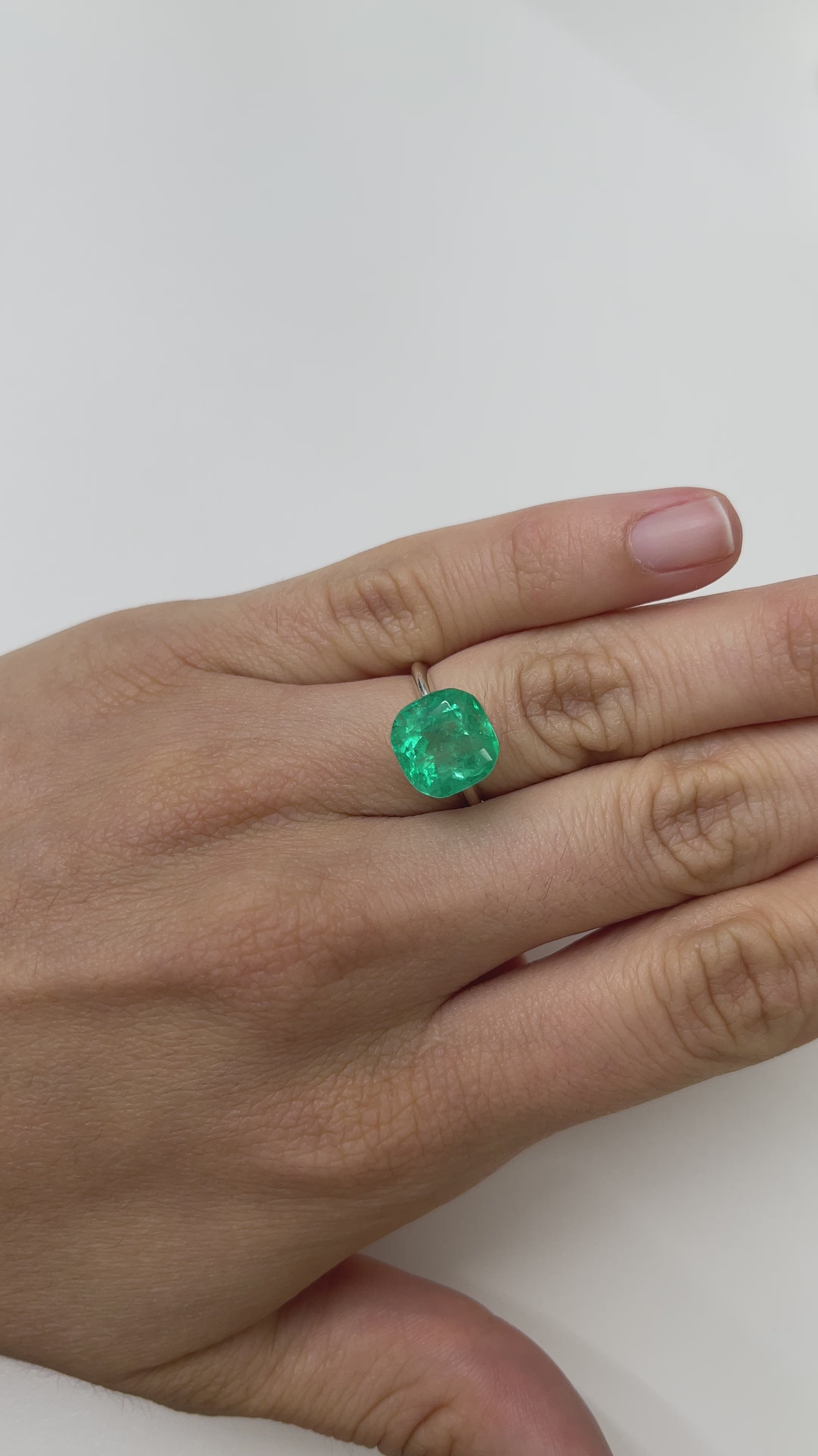 6.25 Carat 11x11 Bluish Green Natural Loose Colombian Emerald-Cushion Cut