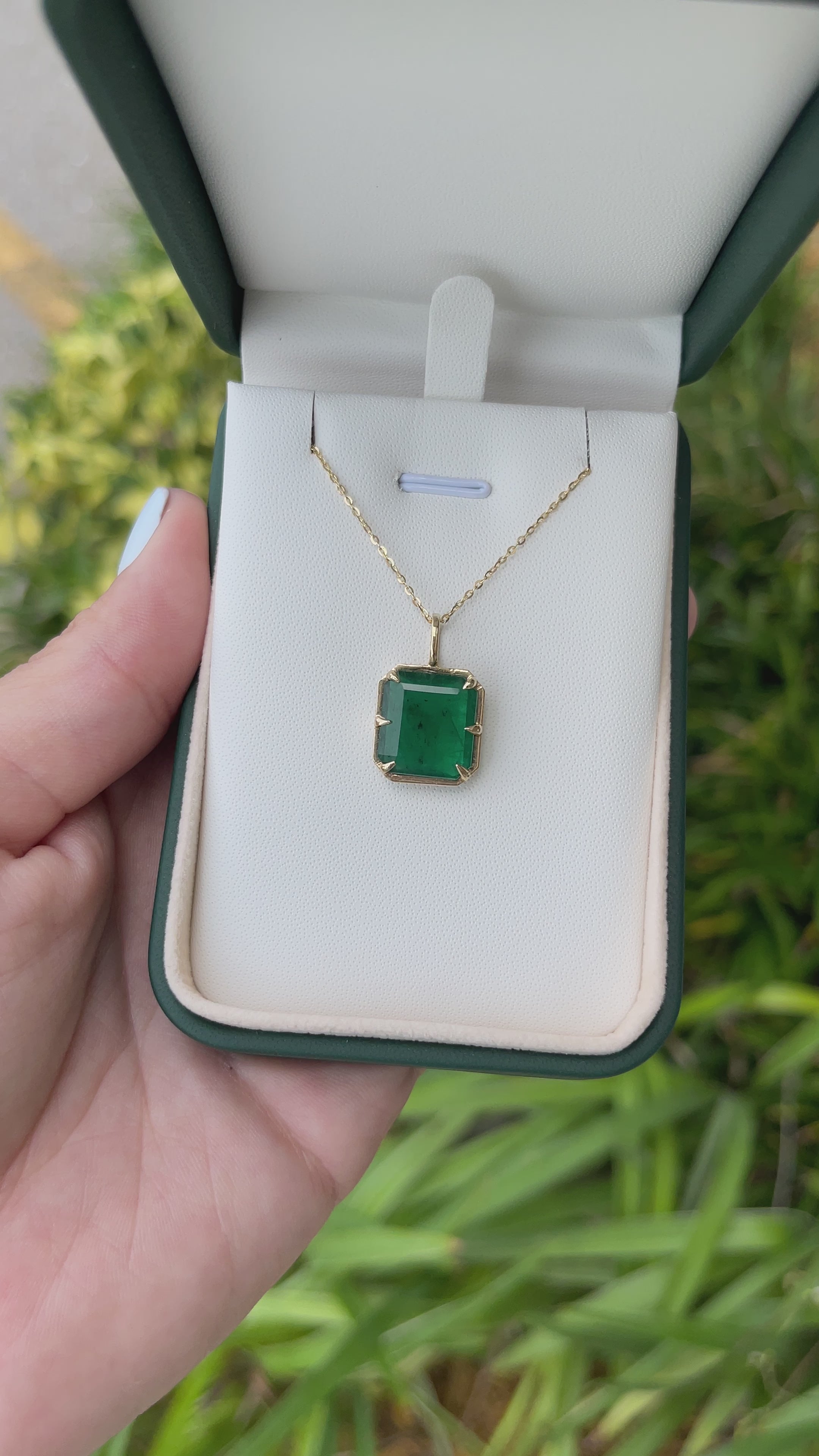 6.30 Carat Natural Dark Green Emerald Georgian Styled Solitaire Pendant 14K