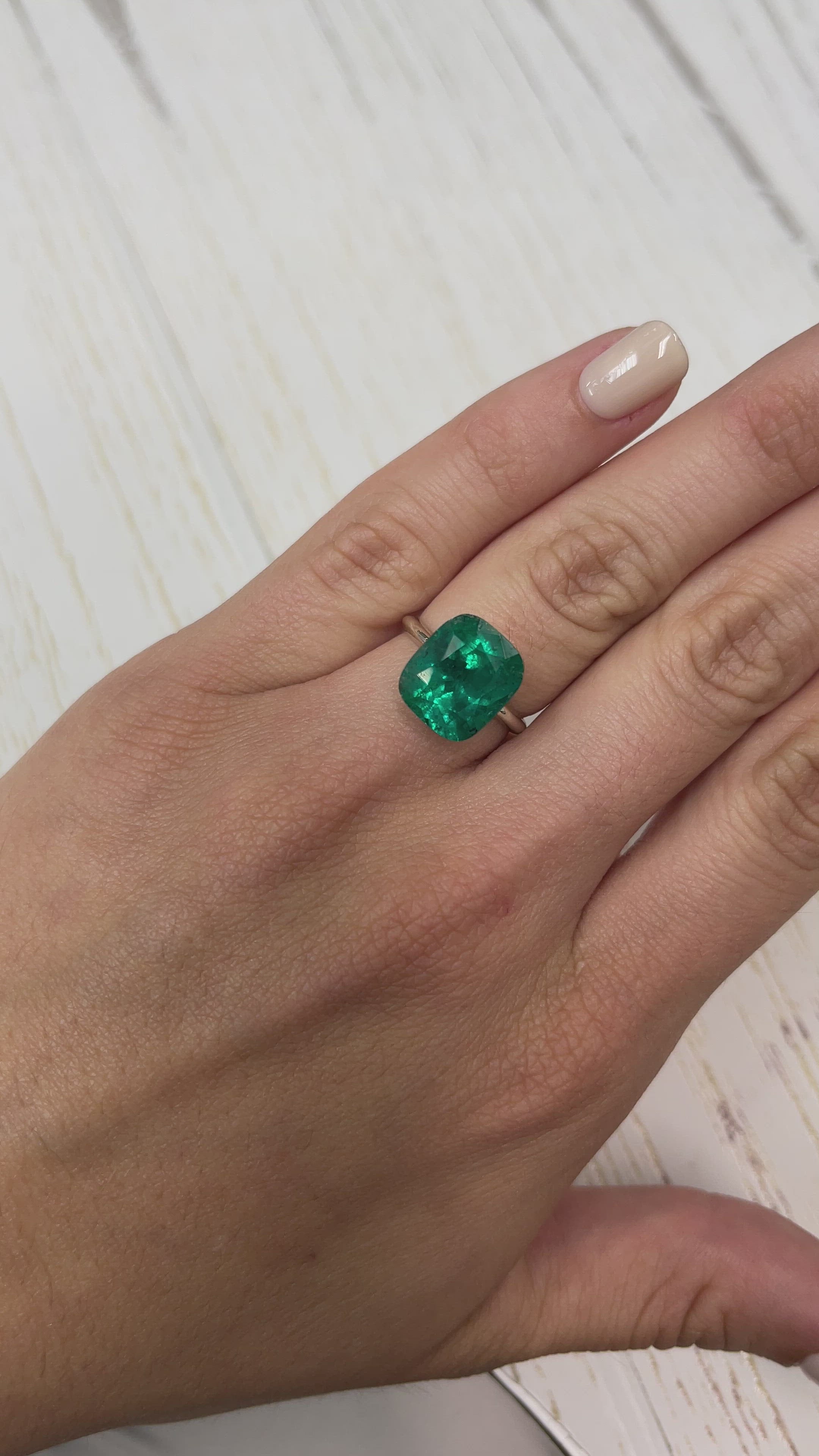 6.32 Carat Intense Muzo Green Natural Loose Colombian Emerald-Cushion Cut