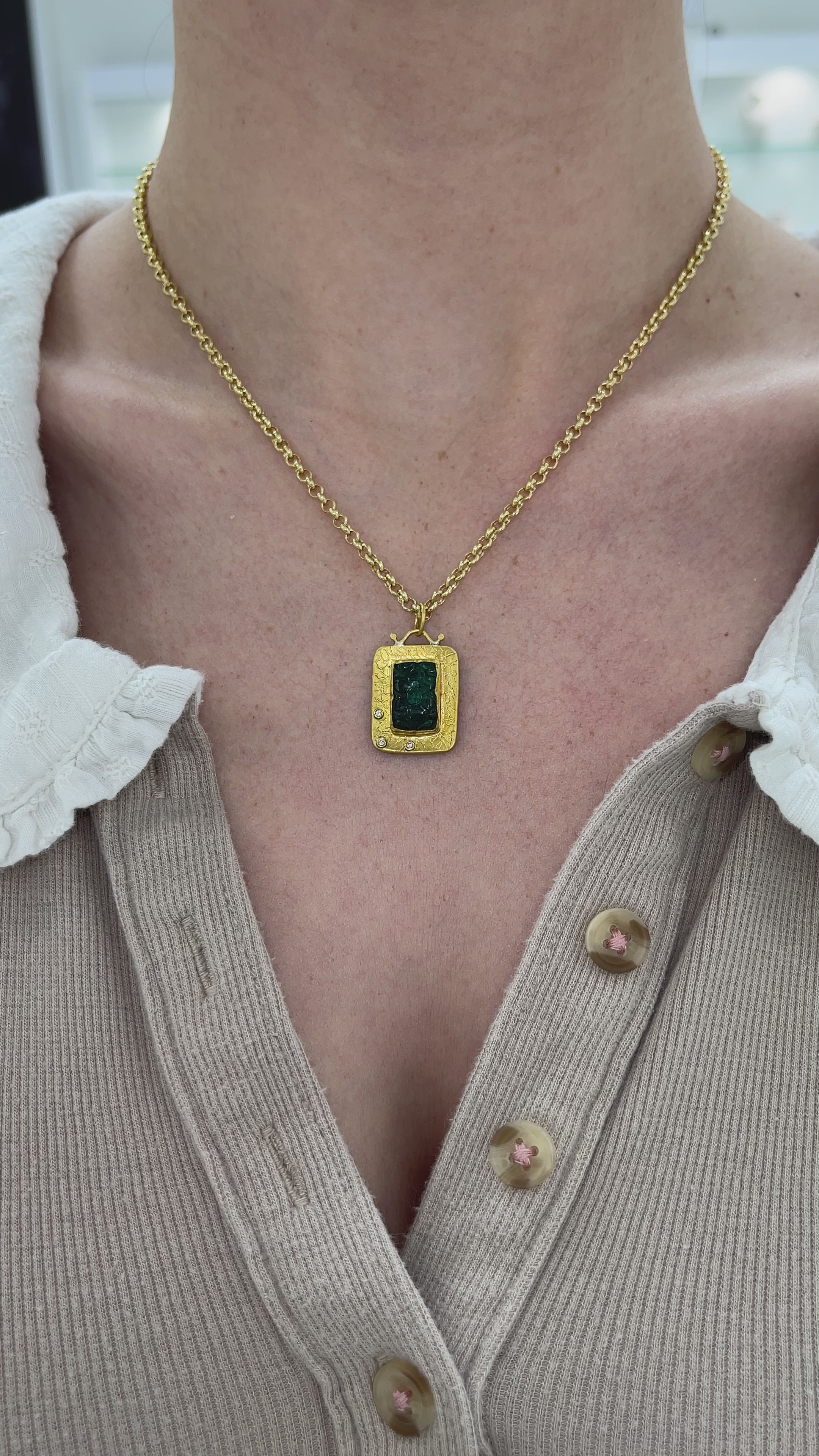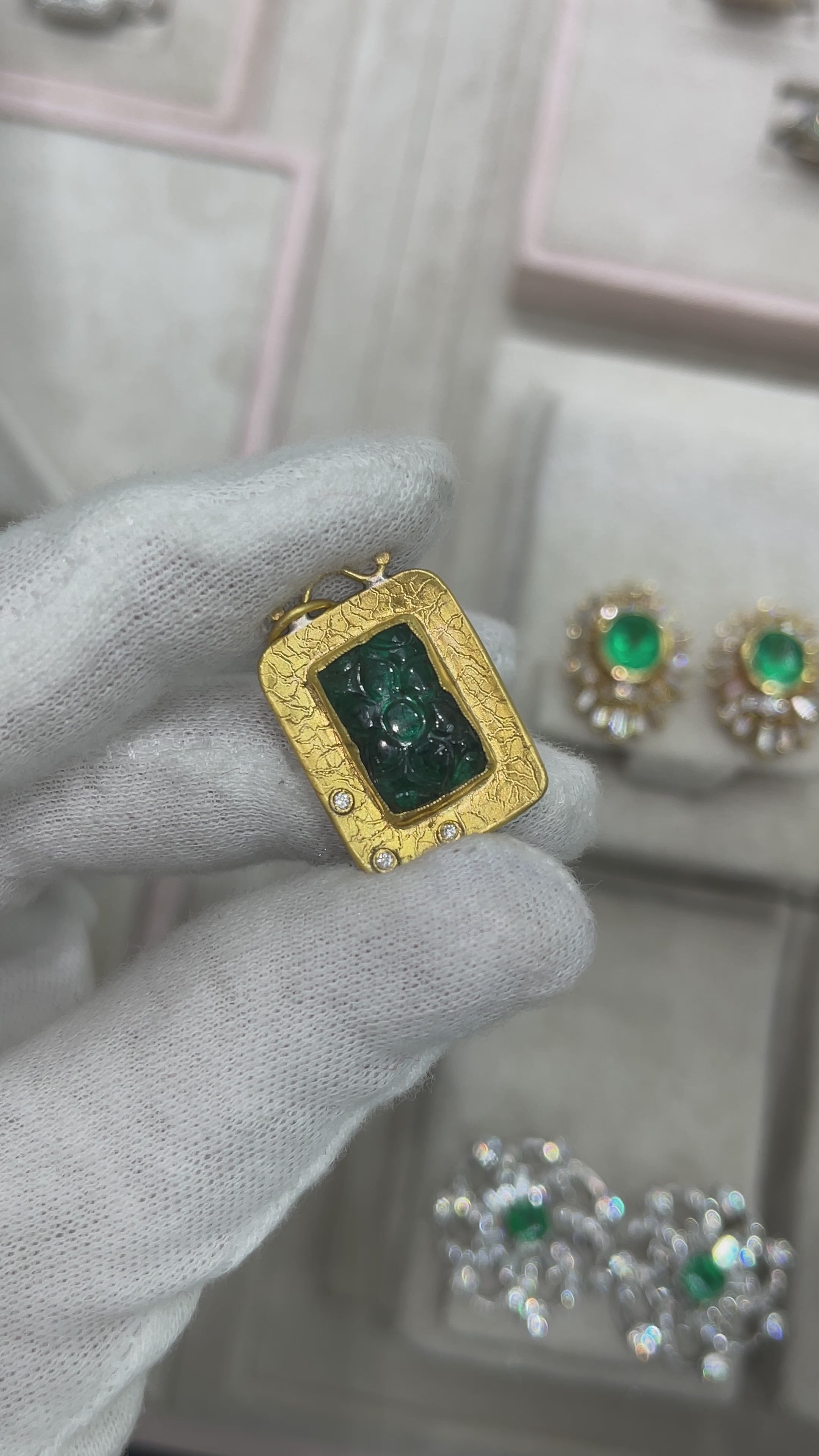 6.35ct Carat Floral Hand-Carved Emerald & Diamond 24K Gold Pendant