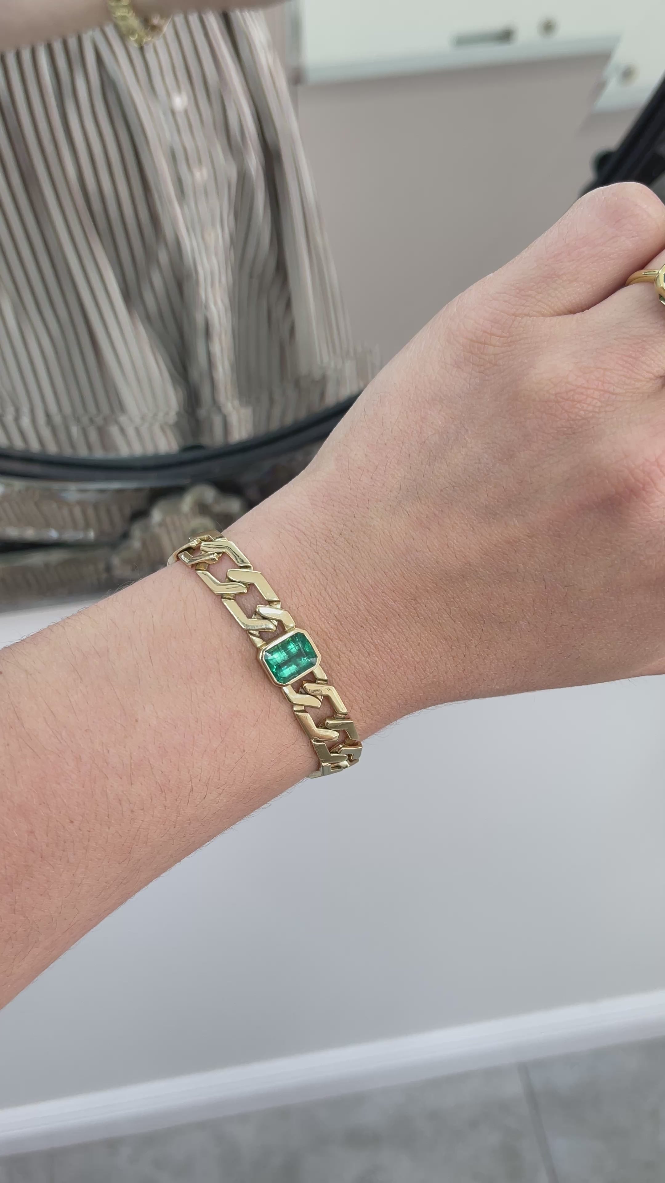 6.38 Carat Bezel Set Chunky Solid Gold Emerald Link Bracelet- 7 Inches