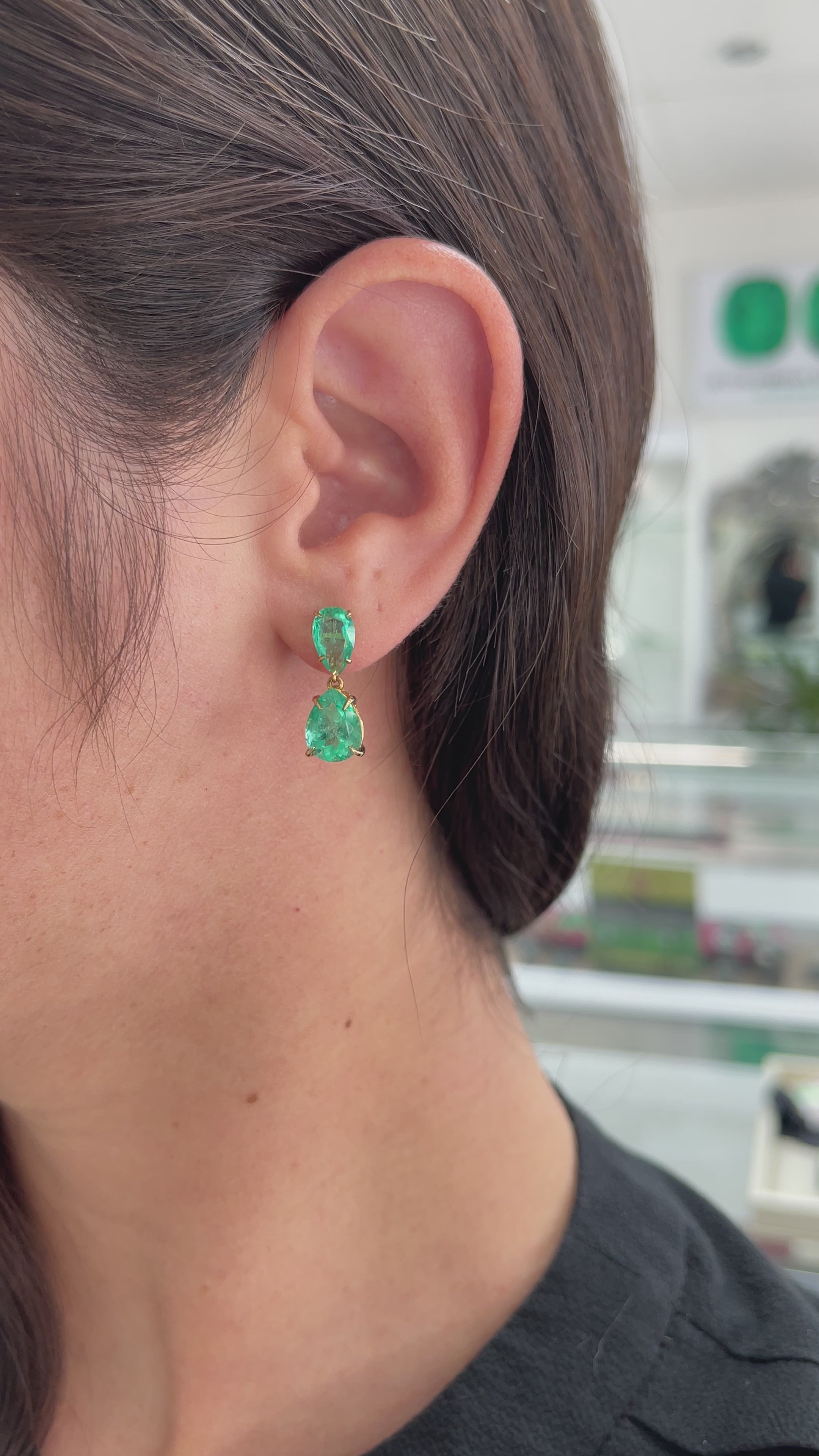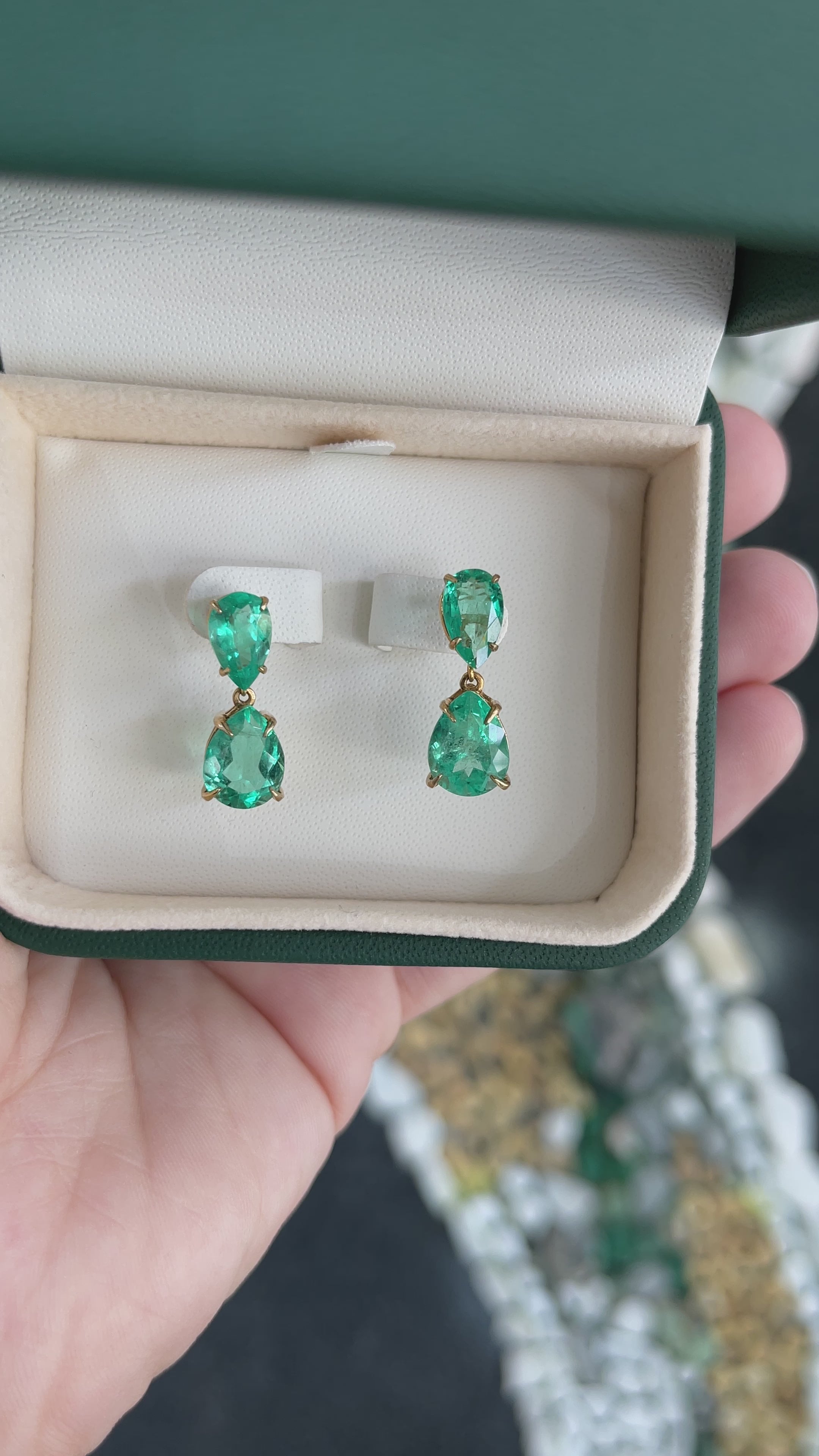 6.56tcw Colombian Emerald Dangle Stud Earrings Yellow Gold 18K