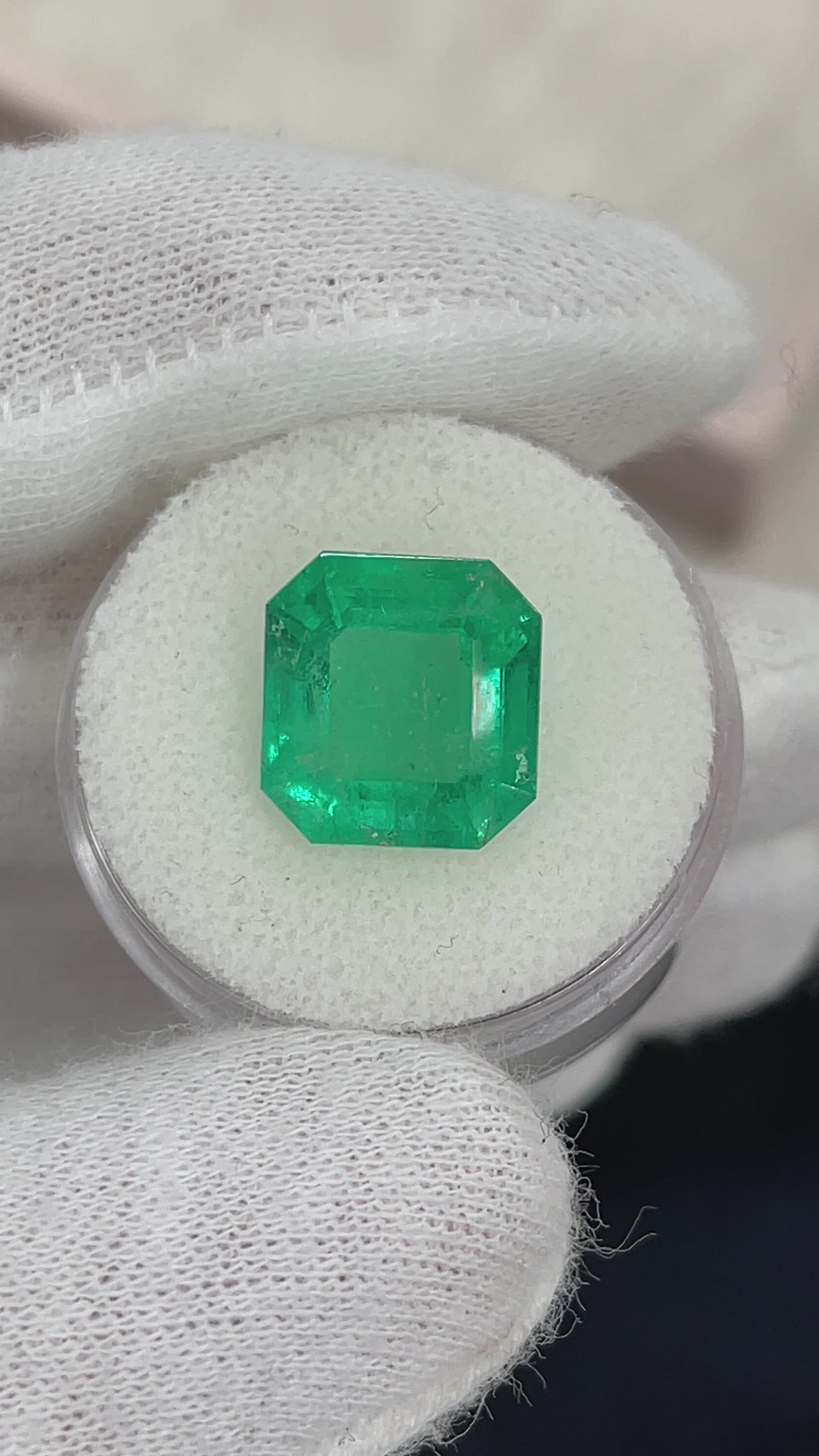 6.93 Carat 12x11.5 Medium Green Natural Loose Colombian Emerald- Asscher Cut