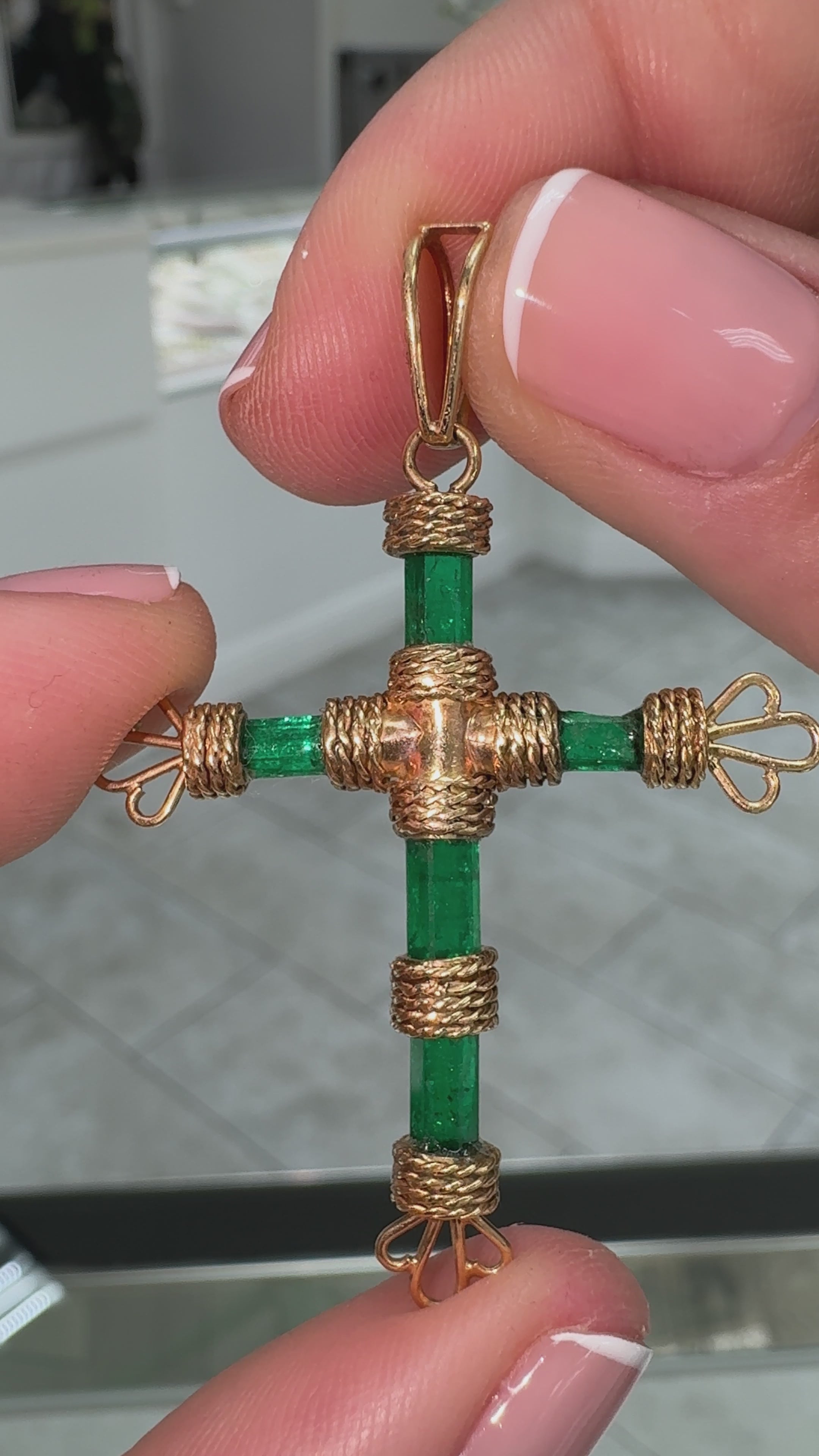 7.69tcw 18K Gold Rough Colombian Emerald Pendant Crystal Cross Pendant