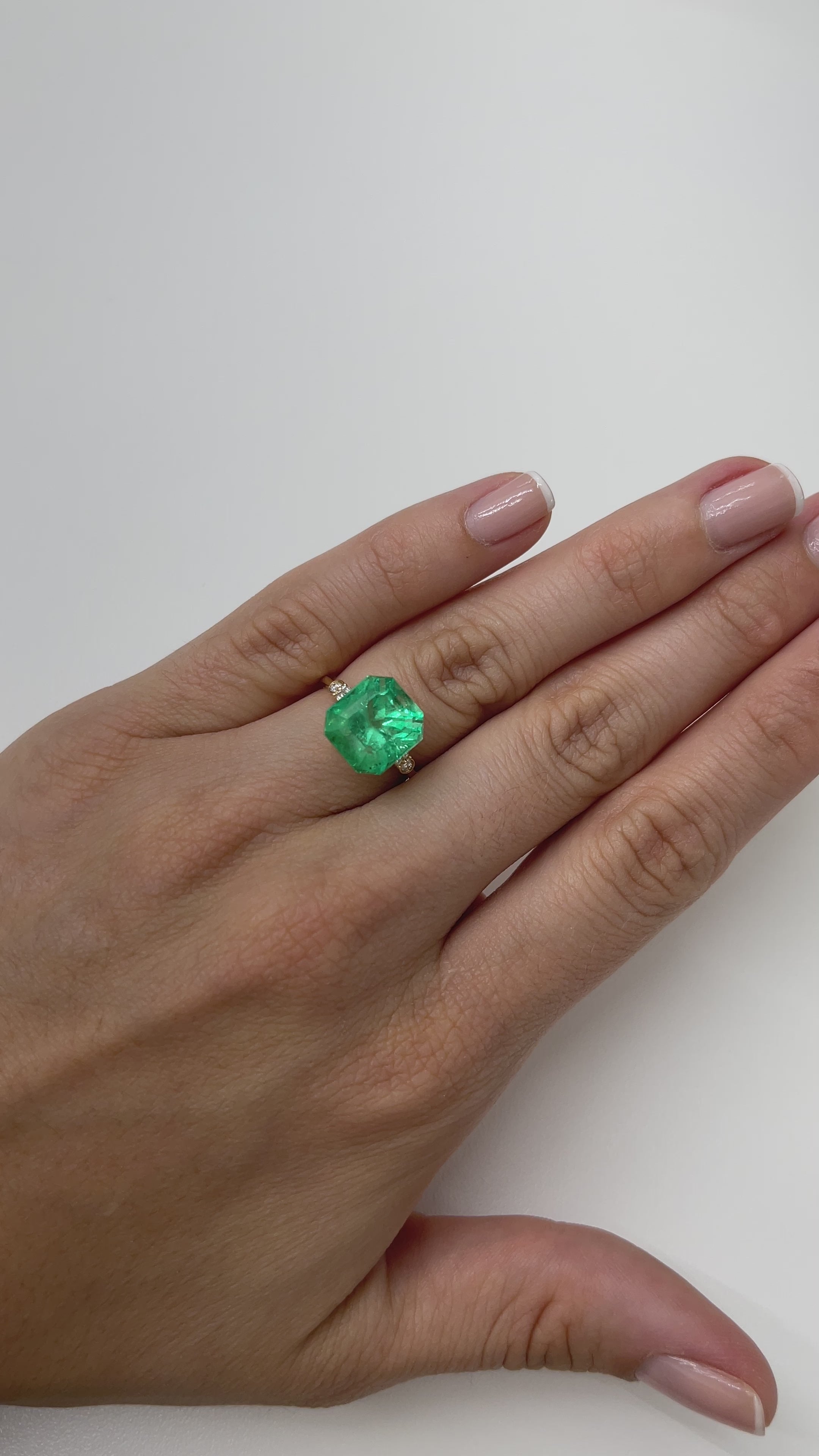 7.76 Carat 12x11 Yellowish Green Natural Loose Colombian Emerald-Asscher Cut