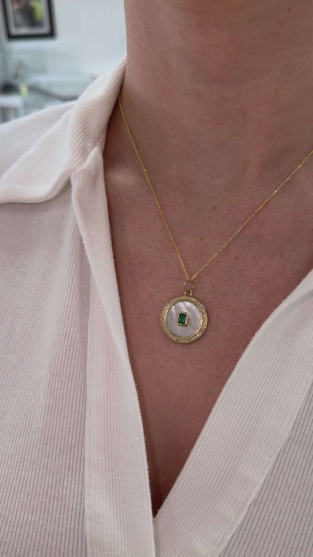 7.85tcw 14K Natural Emerald & Mother of Pearl Diamond Halo Accent Charm Pendant Necklace