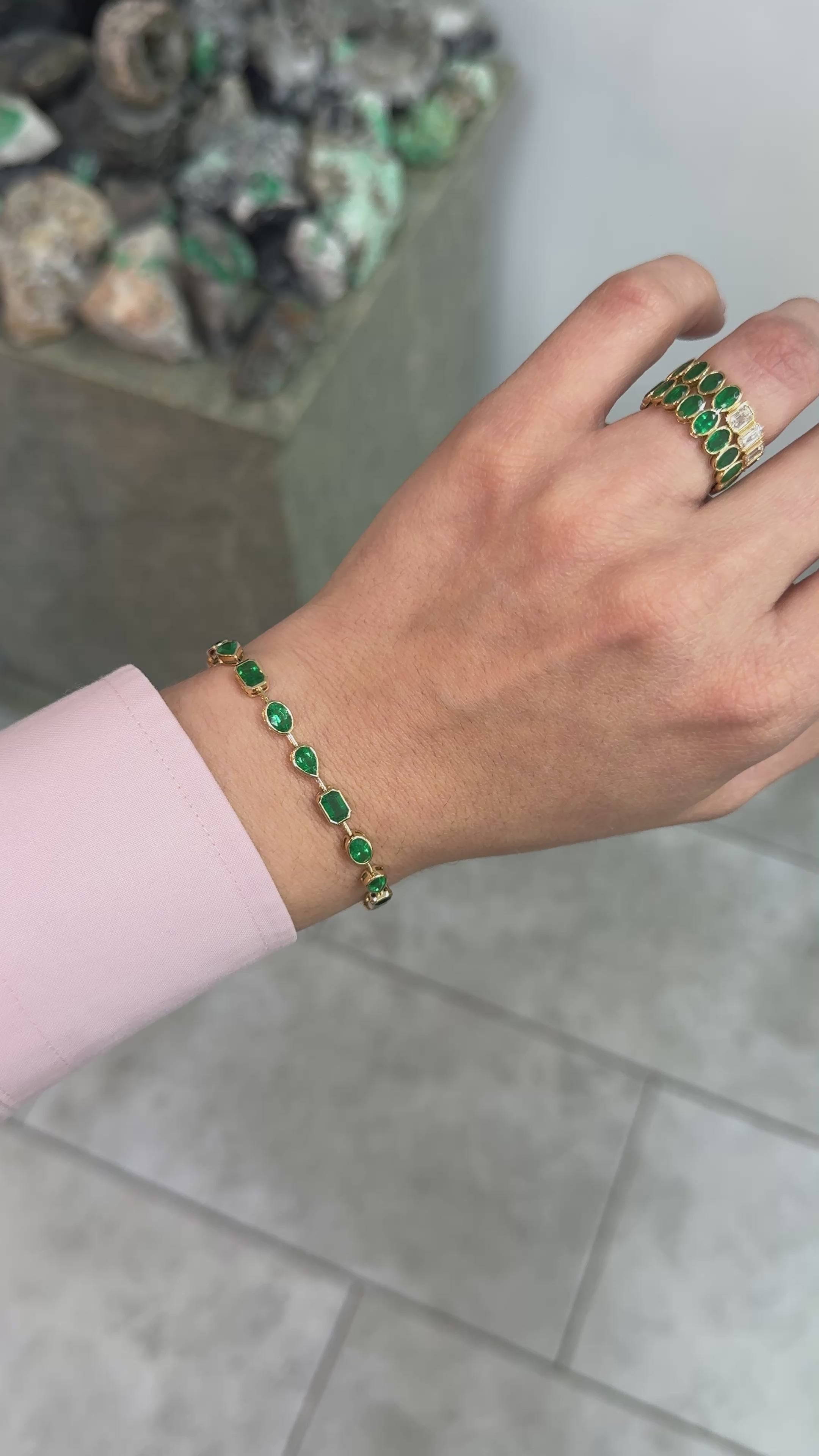 7.93tcw 18K Emerald Mixed Shape Tennis Bracelet- 7 Inches
