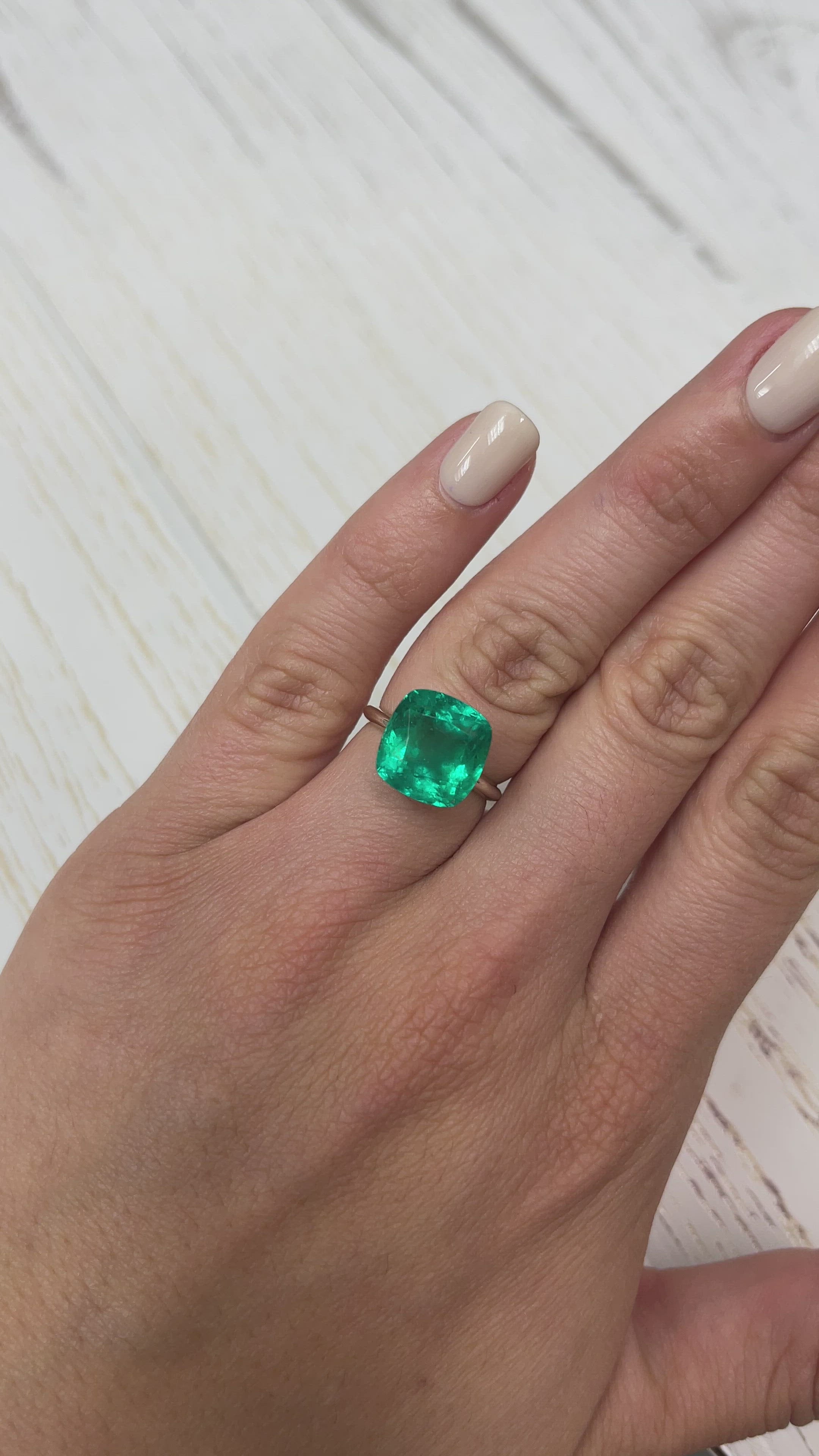 7.98 Carat 12x12 Vivid Bluish Green Natural Loose Colombian Emerald-Rounded Cushion Cut