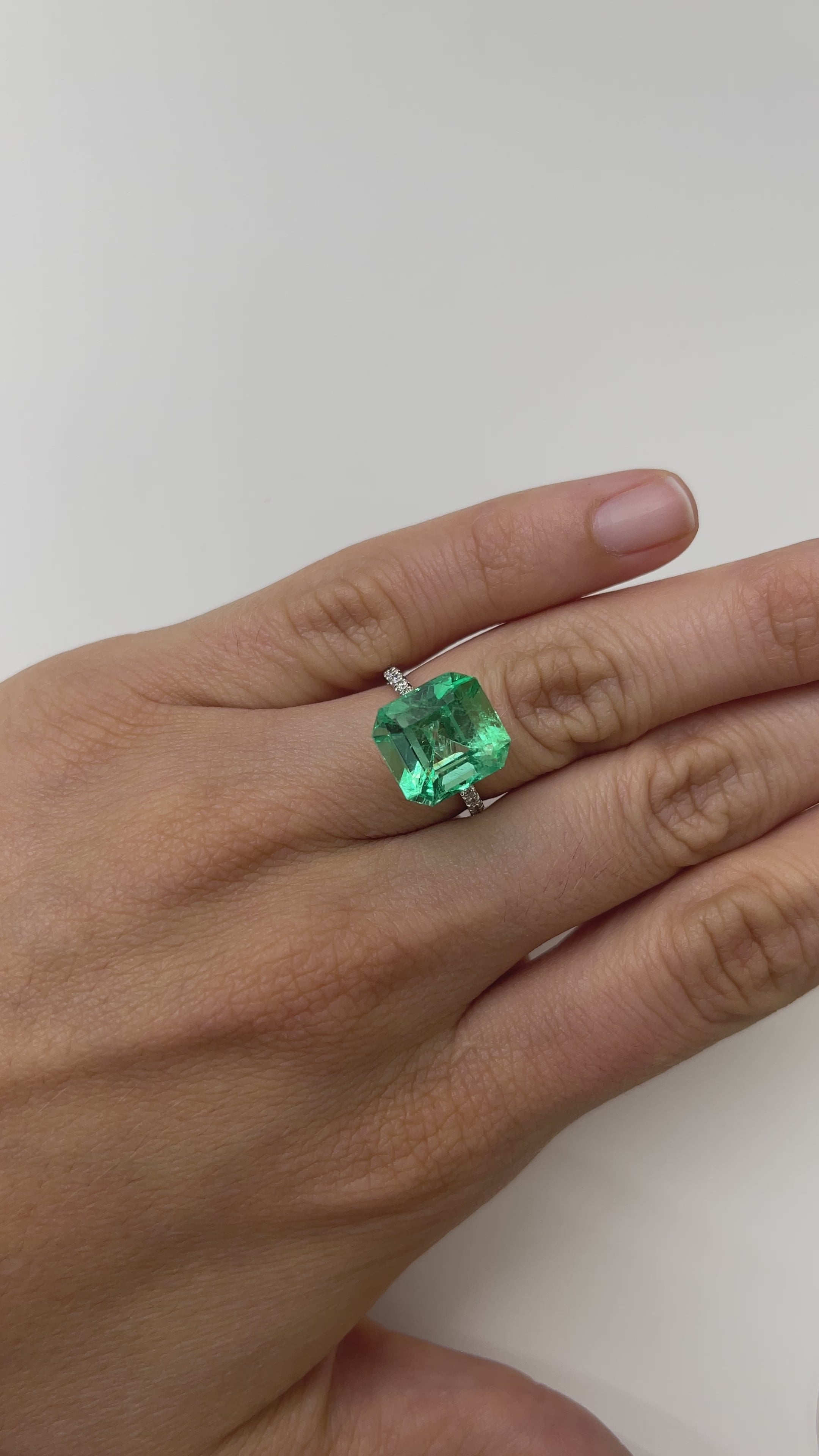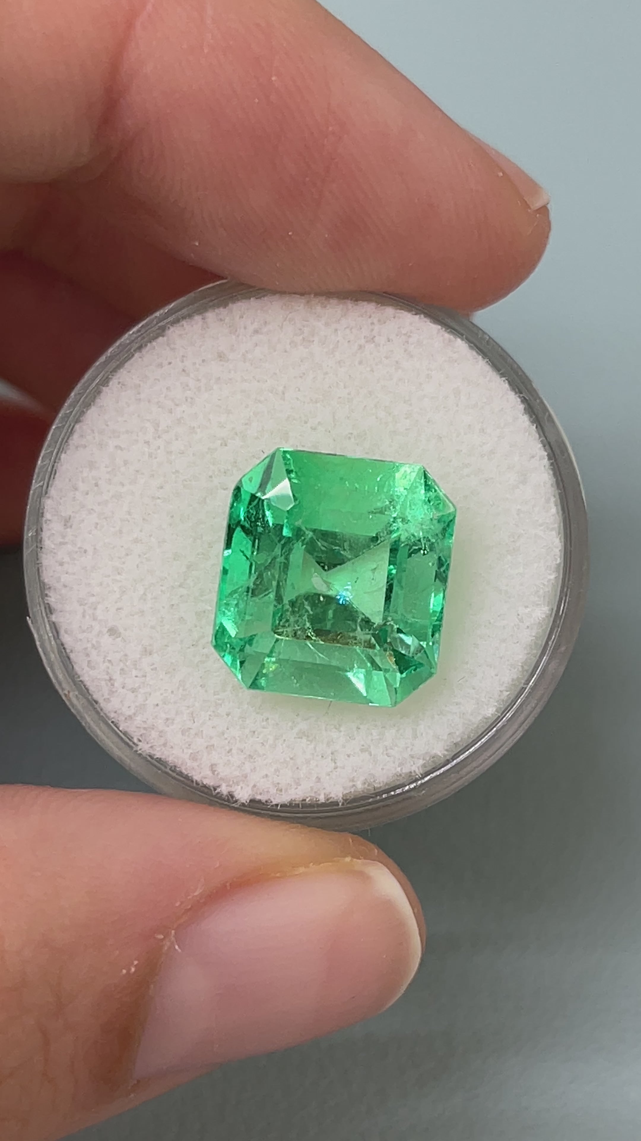 8.01 Carat 12.5x11.5 Lusterous Green Natural Loose Colombian Emerald-Asscher Cut