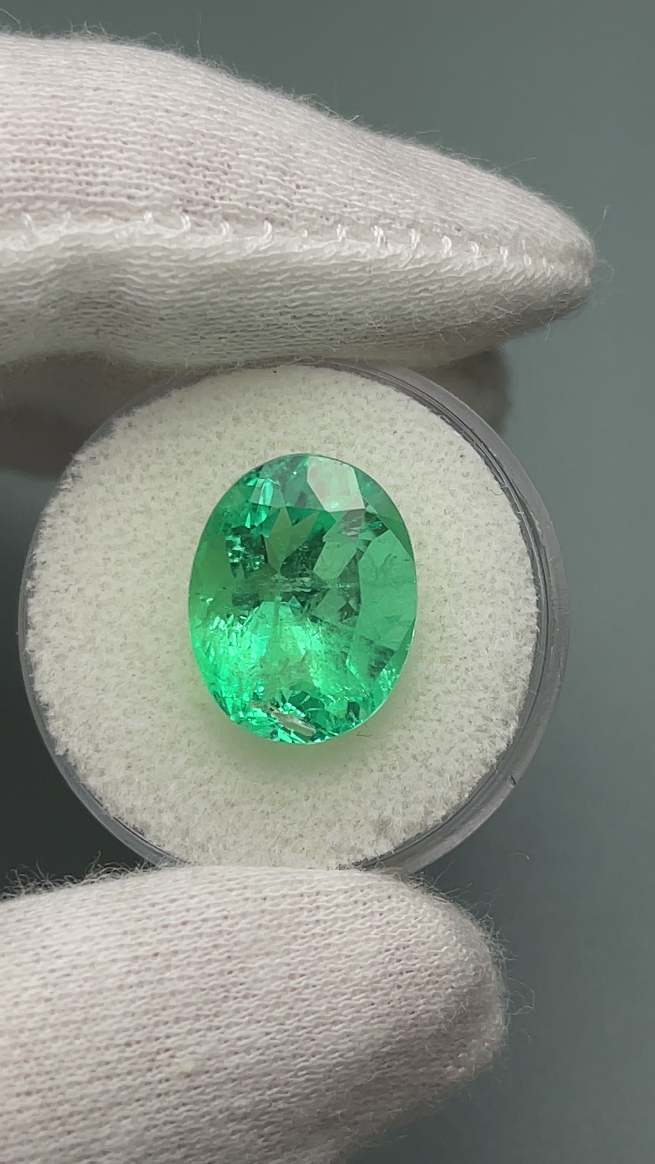 8.40 Carat 15x12 Muzo Yellowish Green Natural Loose Colombian Emerald-Oval Cut