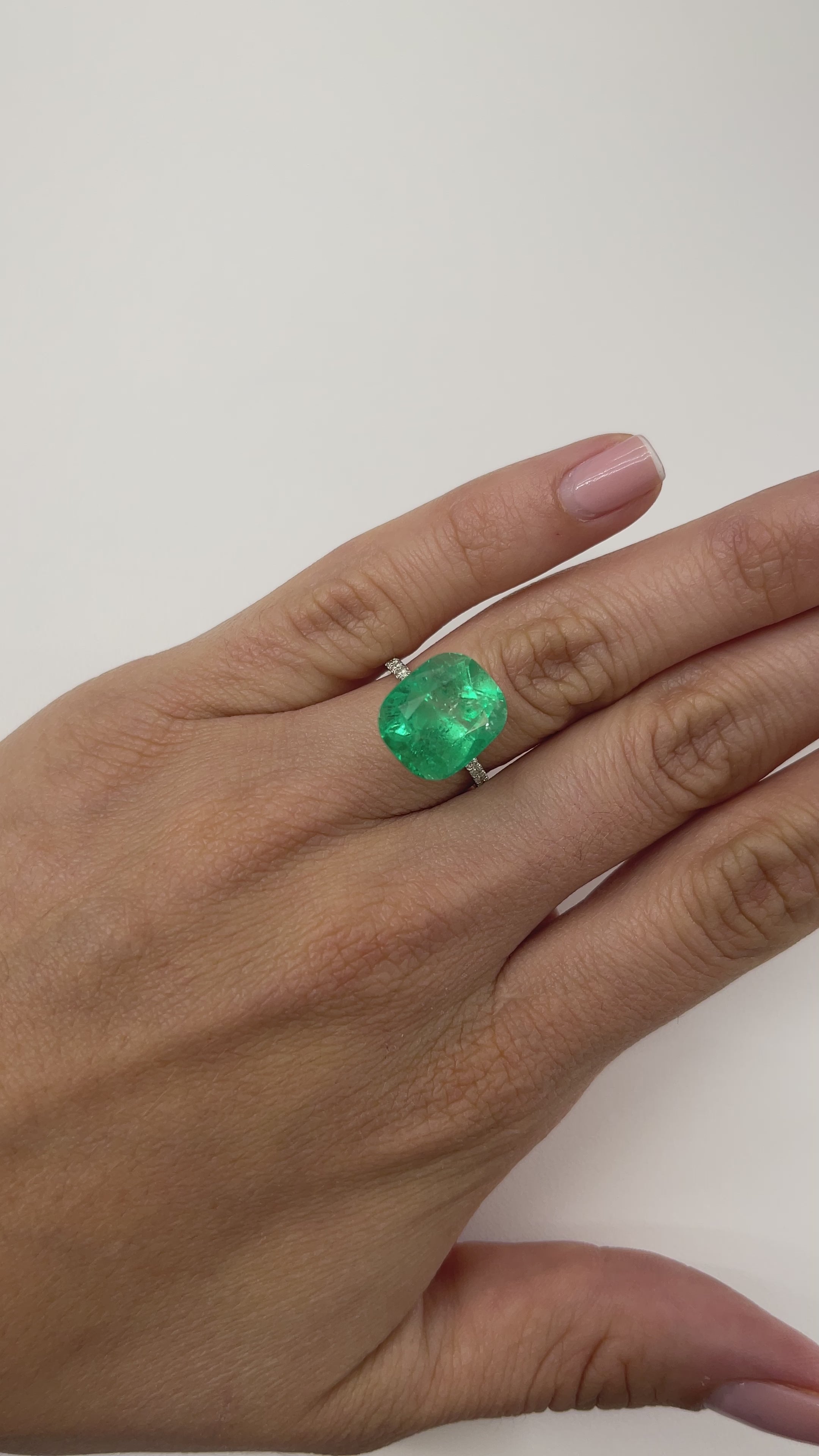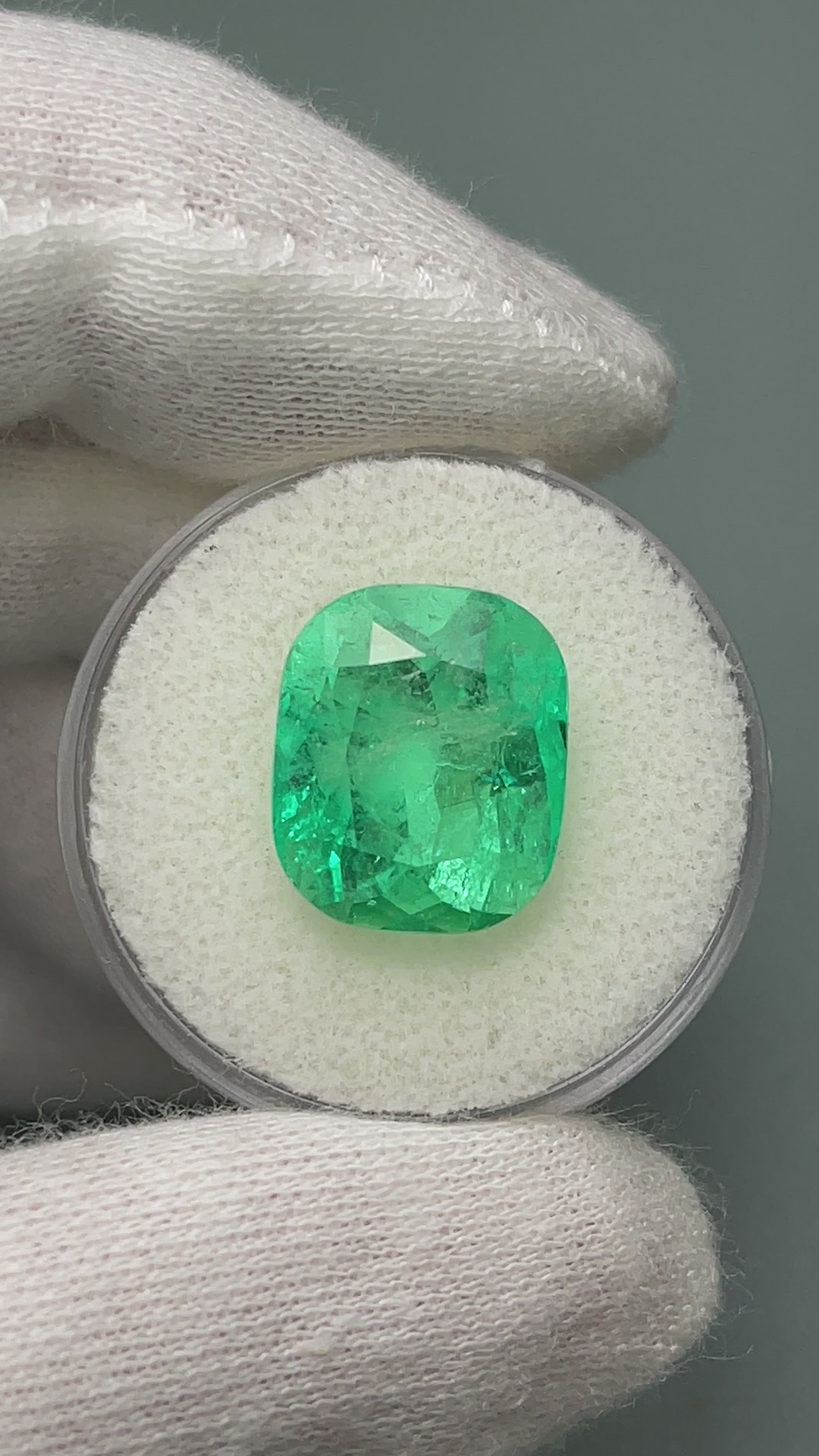 9.23 Carat 14x12 Muzo Yellowish Green Natural Loose Colombian Emerald-Cushion Cut