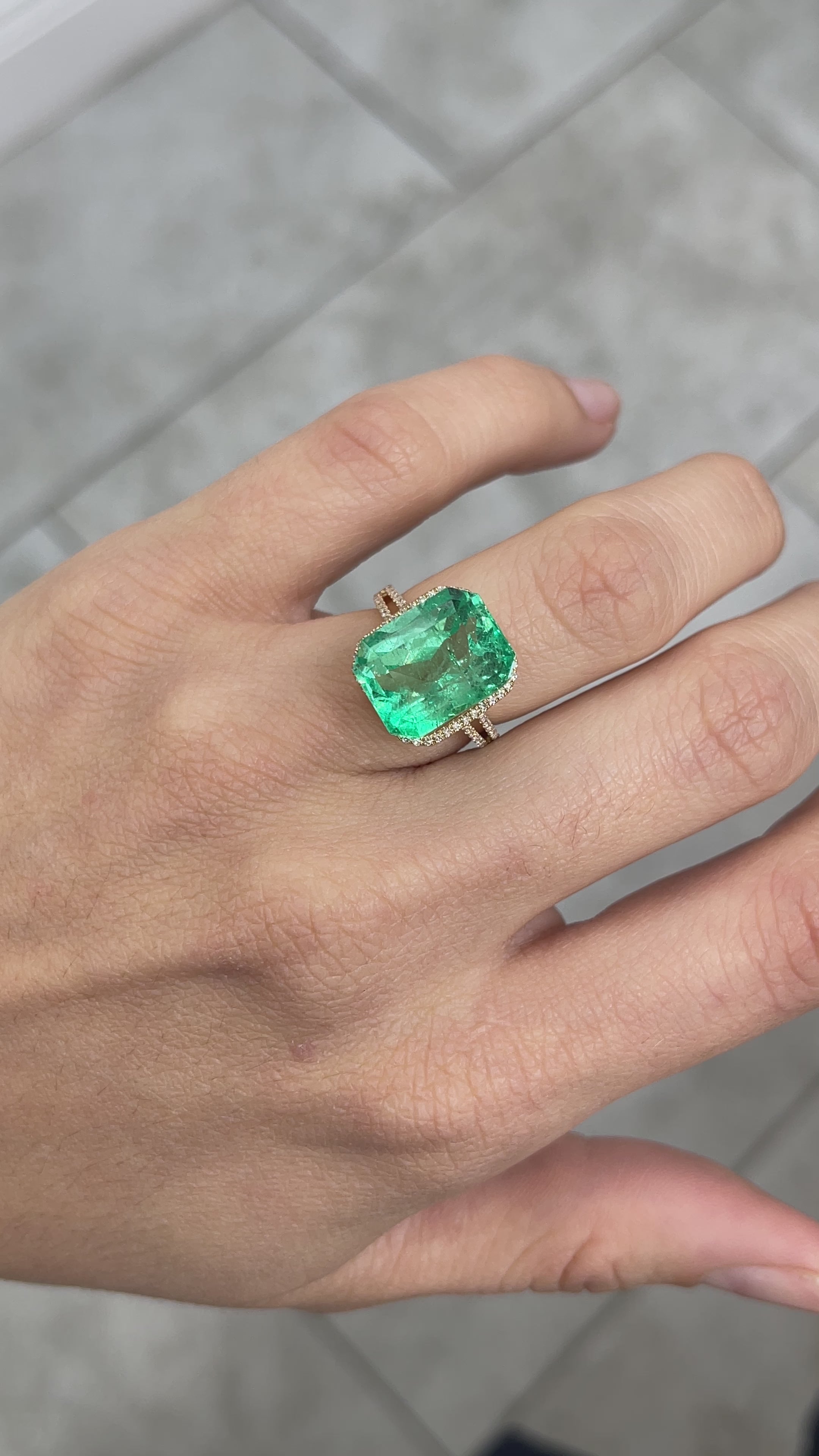 9.51 Carat 14x11 Vivacious Green Emerald Cut Loose Authentic Colombian emerald-Emerald Cut
