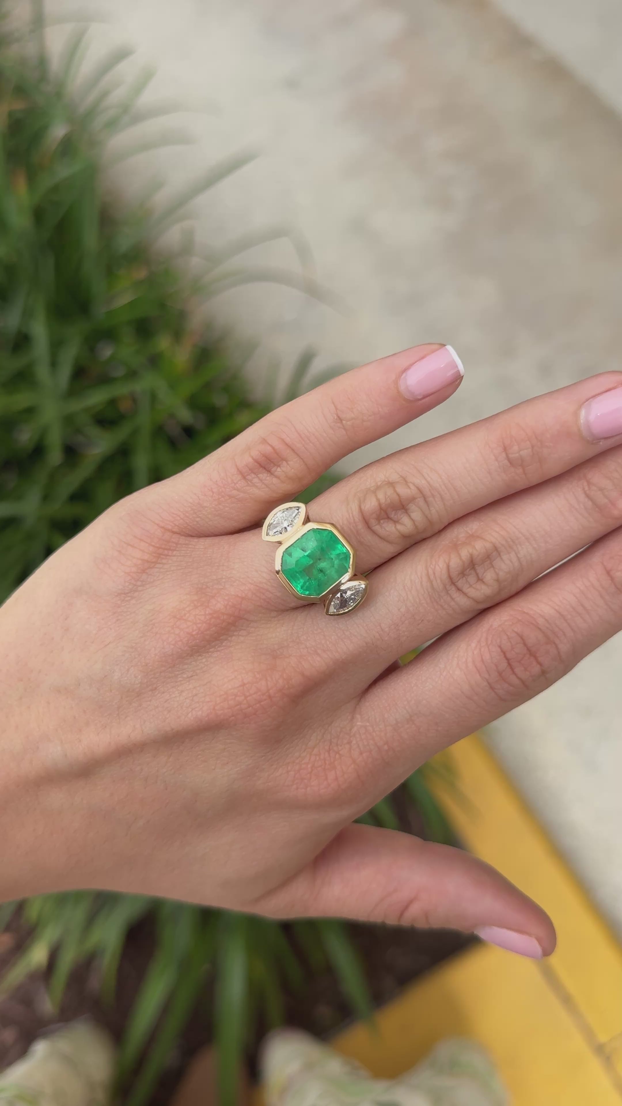 9.66tcw Emerald Cut Colombian Emerald & Marquise Diamond Bezel Triliogy 18K