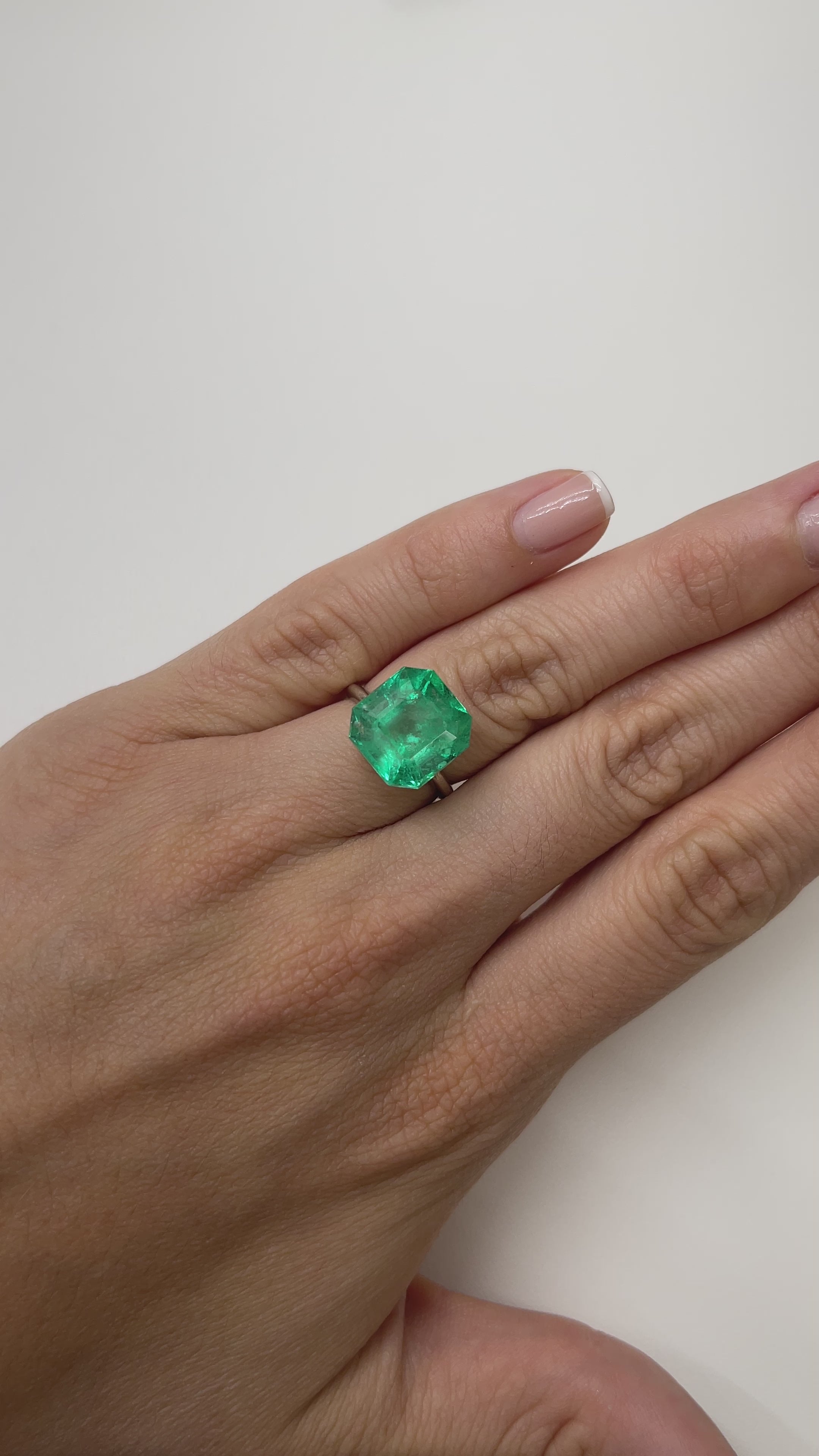 9.79 Carat 13x12 Medium Green Natural Loose Colombian Emerald-Classic Asscher Cut