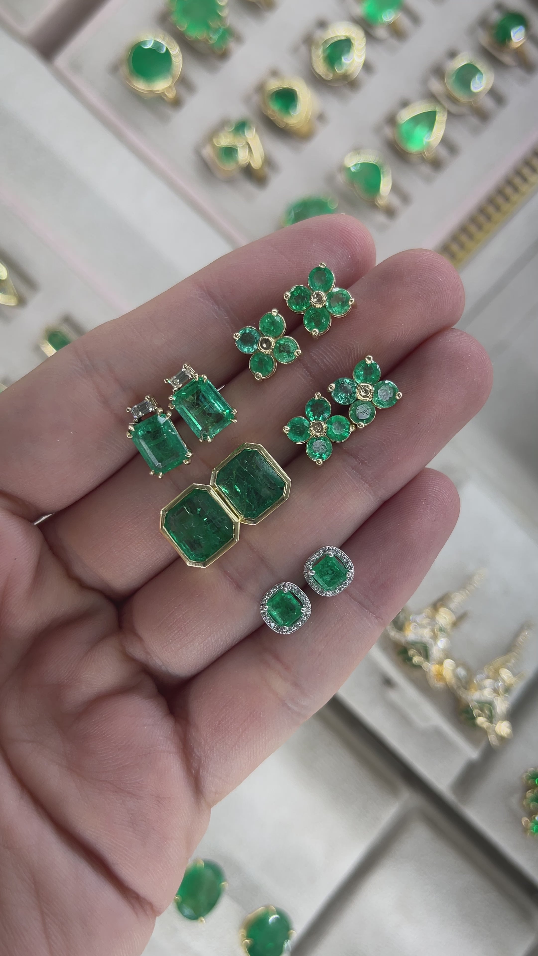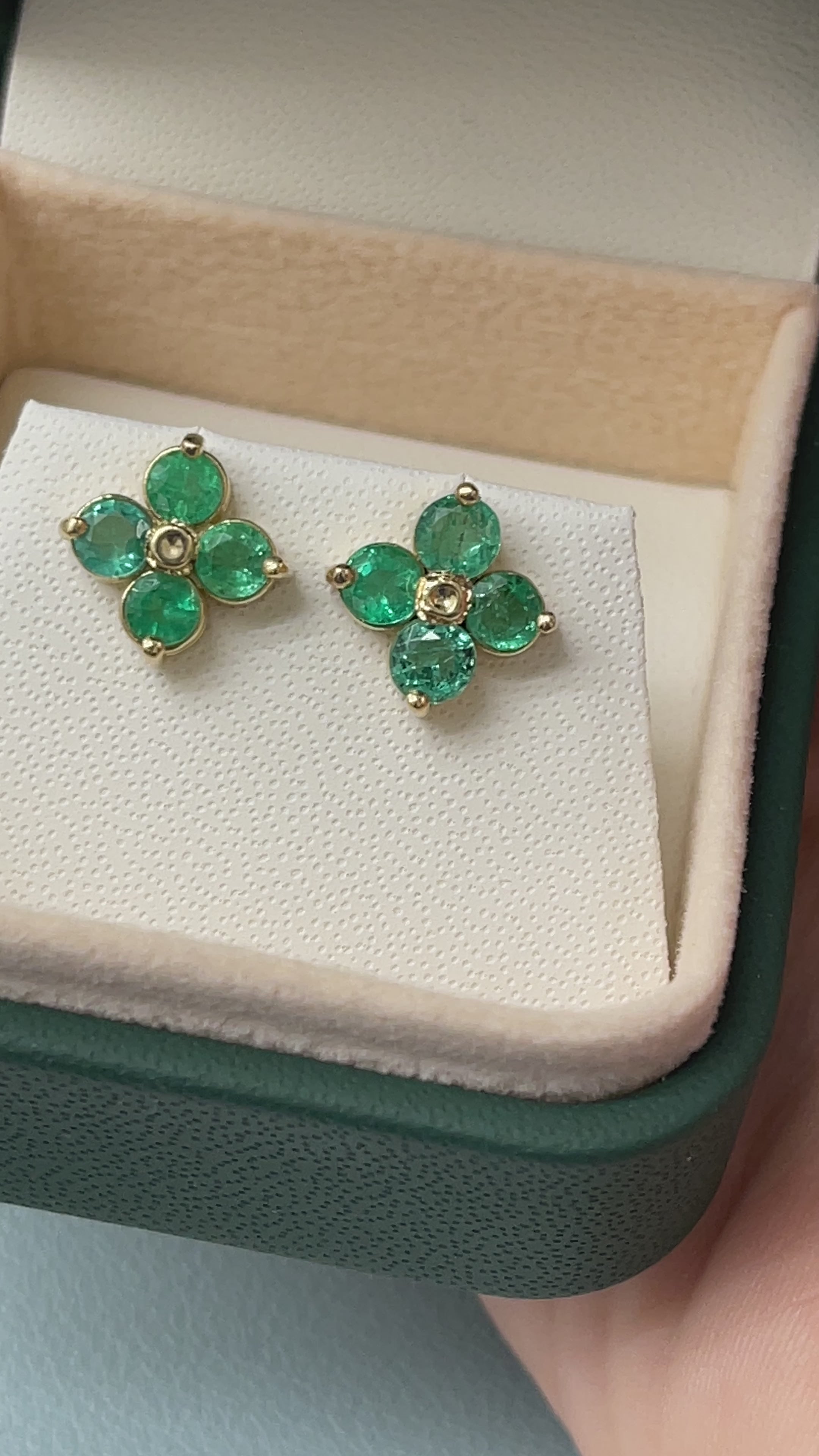 As seen on Instagram: 2.0tcw Round Natural Emerald Floral Studs 14K Gold