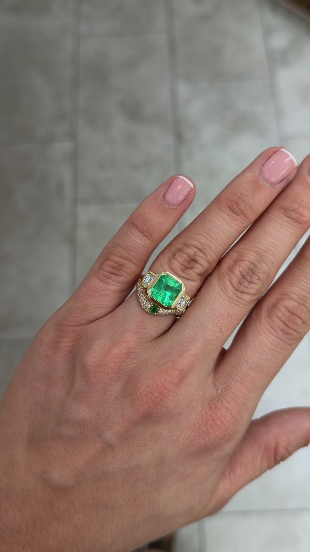 Custom Curved Emerald & Diamond Pave Wedding Band 14K- Size 7