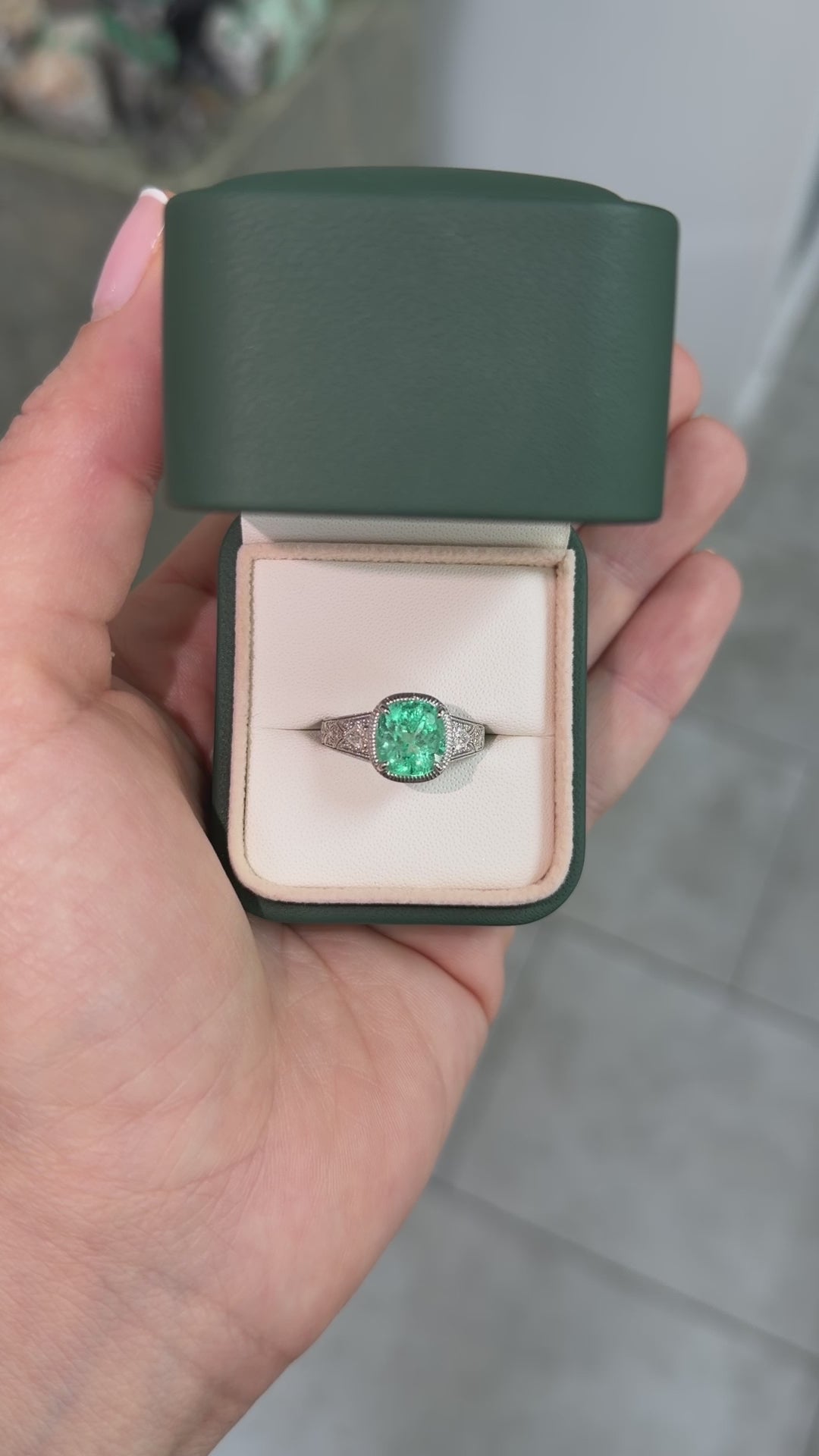 D.C Platinum 3.34 Carat 9.5x9 Cushion Emerald & Diamond Ring