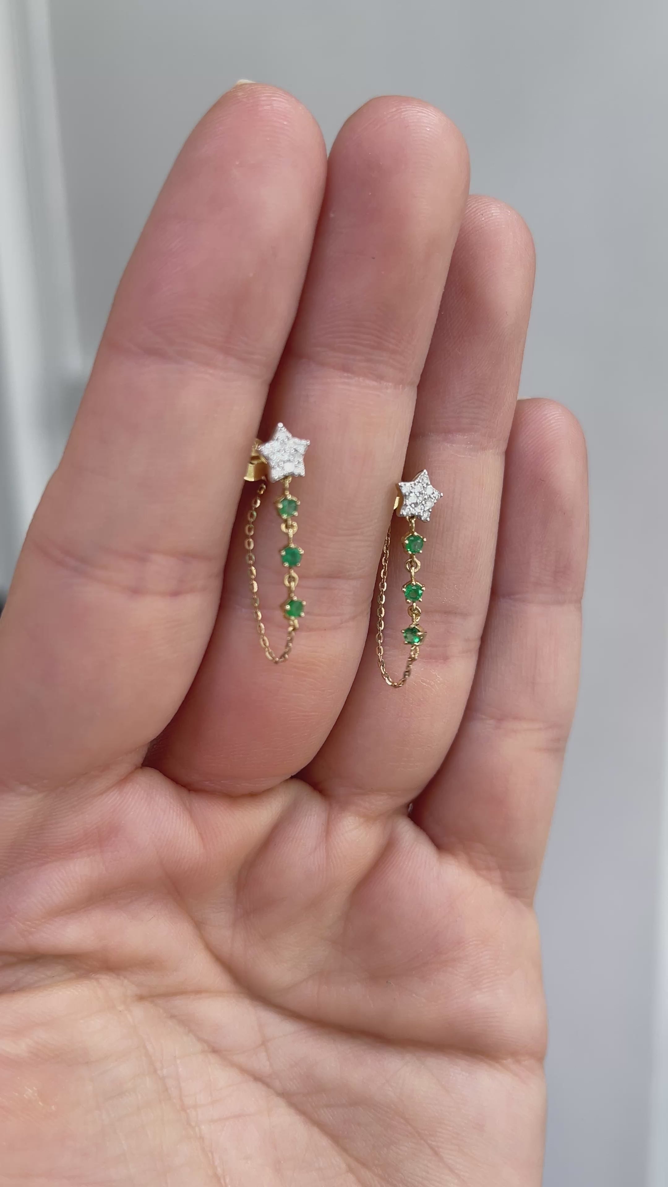 Emerald & Diamond Twinkle Dangle Earrings 14K