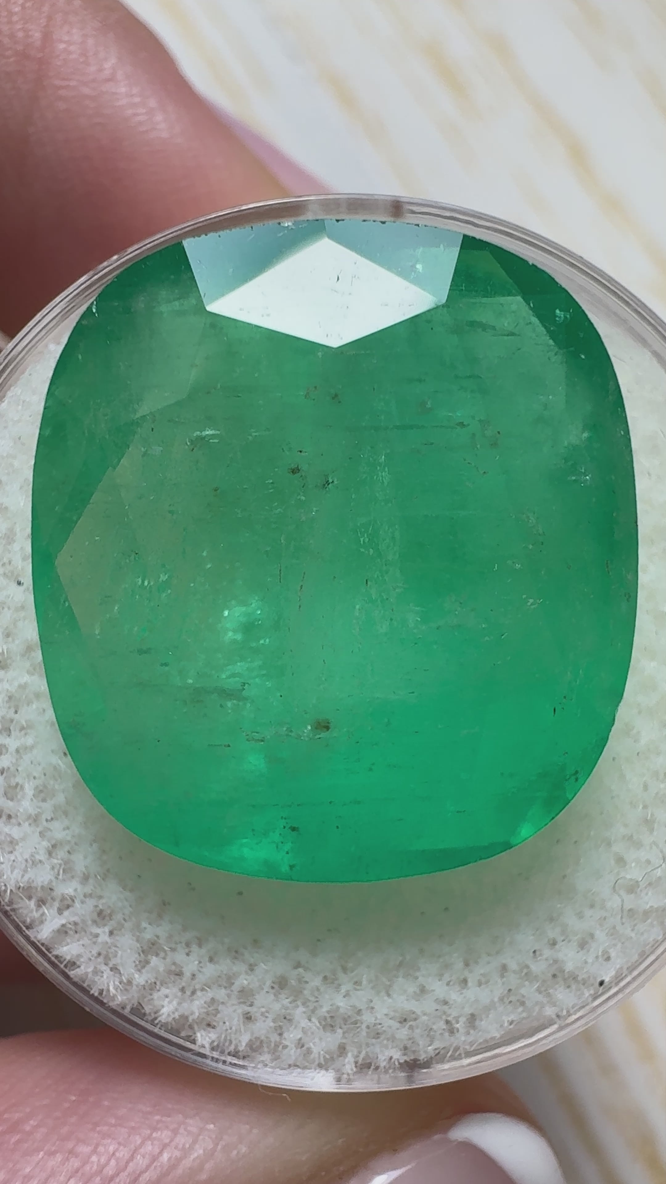 LARGE 21.62 Carat 19x17 Earthy Green Natural Loose Colombian Emerald-Cushion Cut