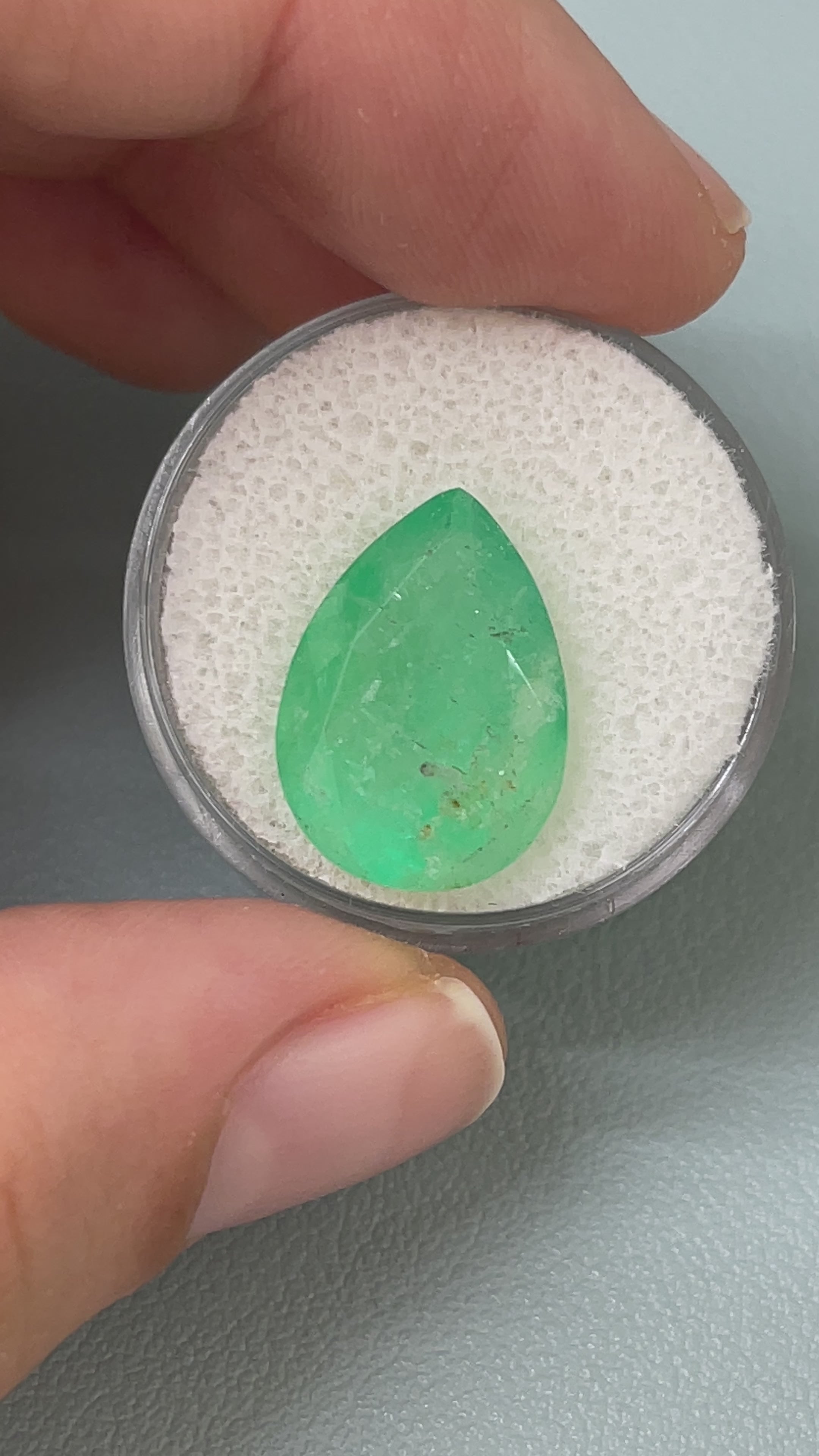 Large 10.45 carat 18x13 Earthy Green Natural Loose Colombian Emerald-Pear Cut