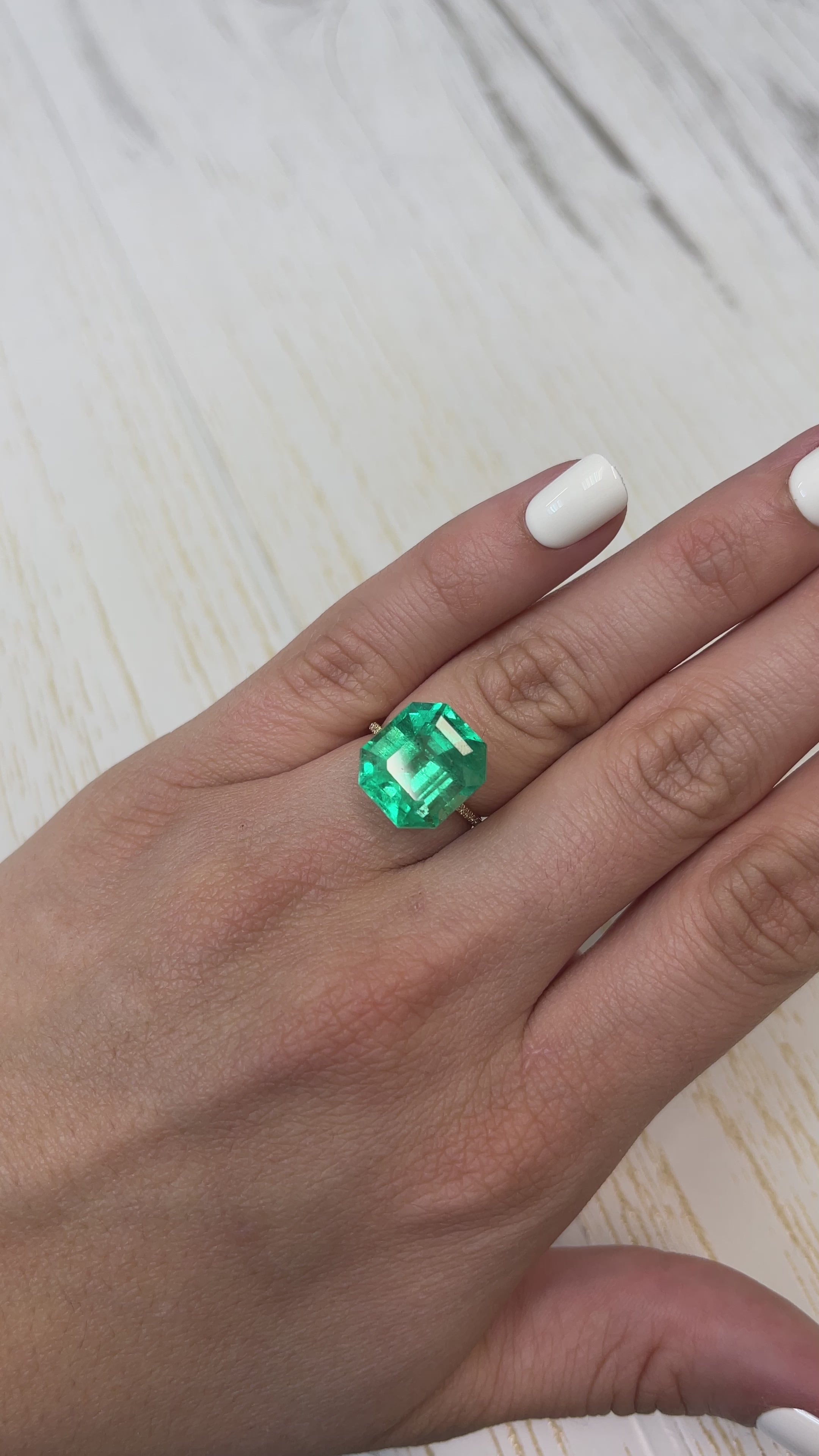 Large 10.81 Carat GIA Minor Oil 14x13 Vivid Muzo Natural Loose Colombian Emerald-Asscher Cut