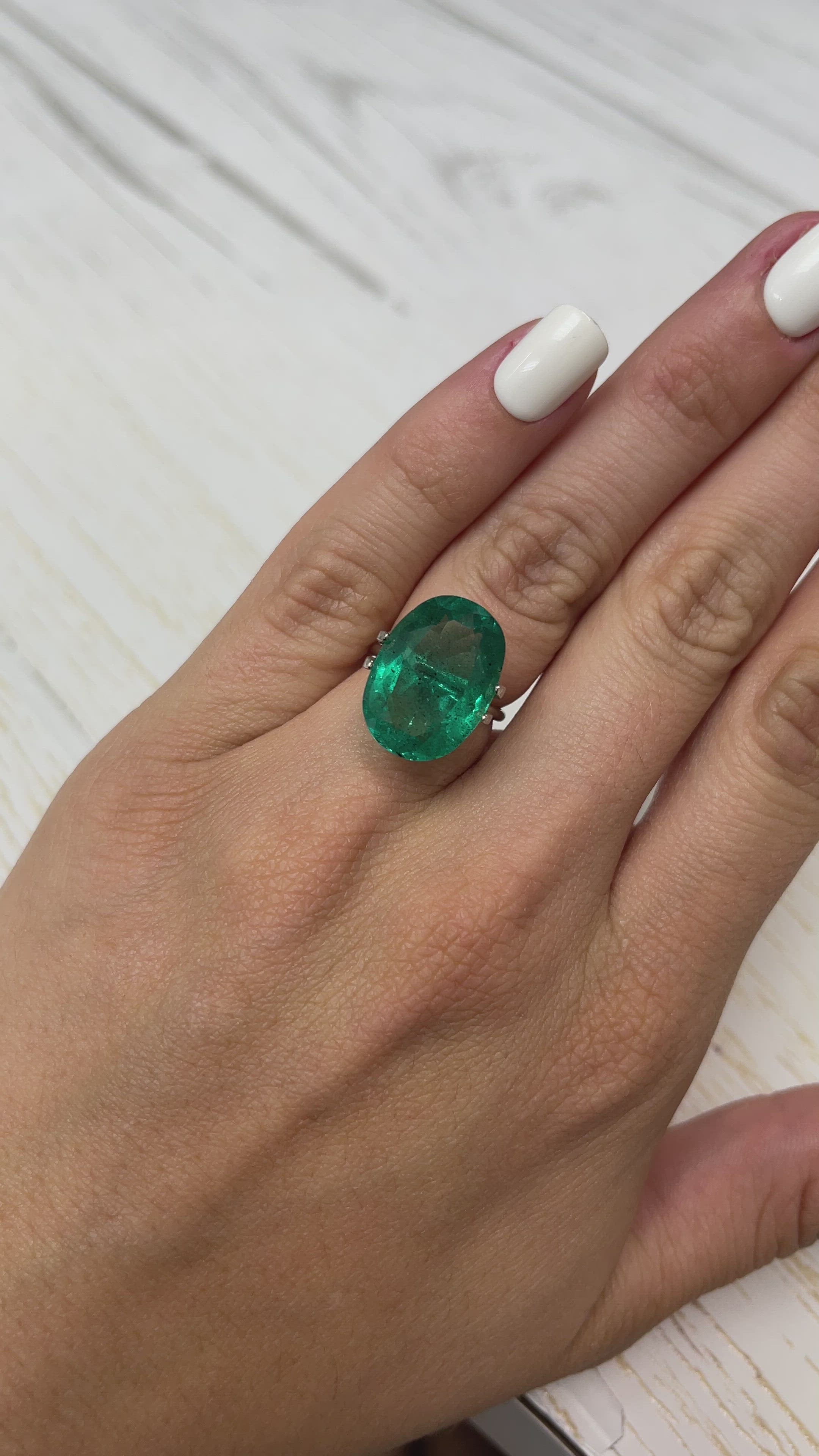 Large 12.42 Carat 18x13 Freckled Rich Green Natural Loose Colombian Emerald-Oval Cut