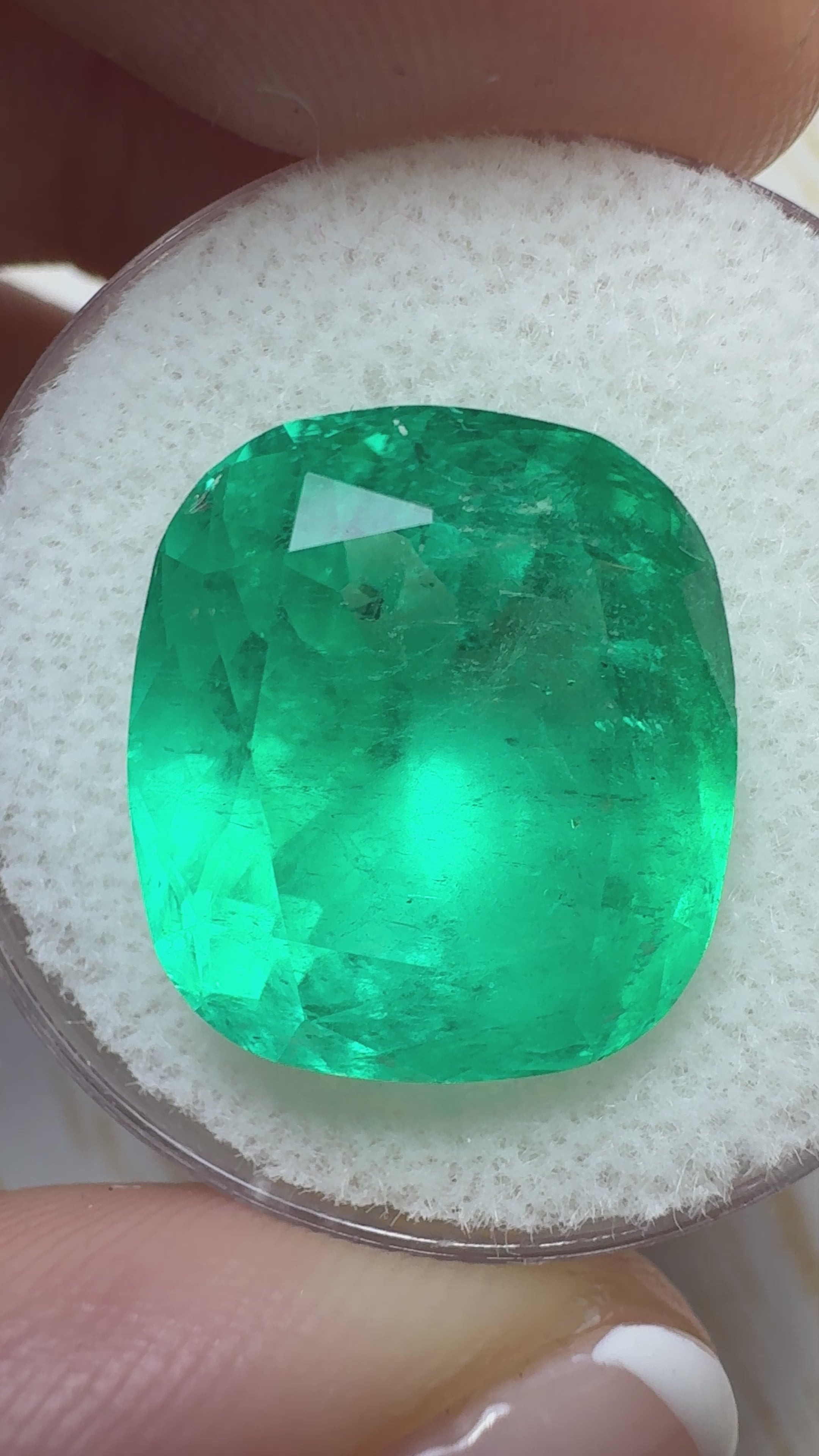 Large 12.50 Carat 15x13.5 Stunning Green Natural Loose Colombian Emerald-Cushion Cut