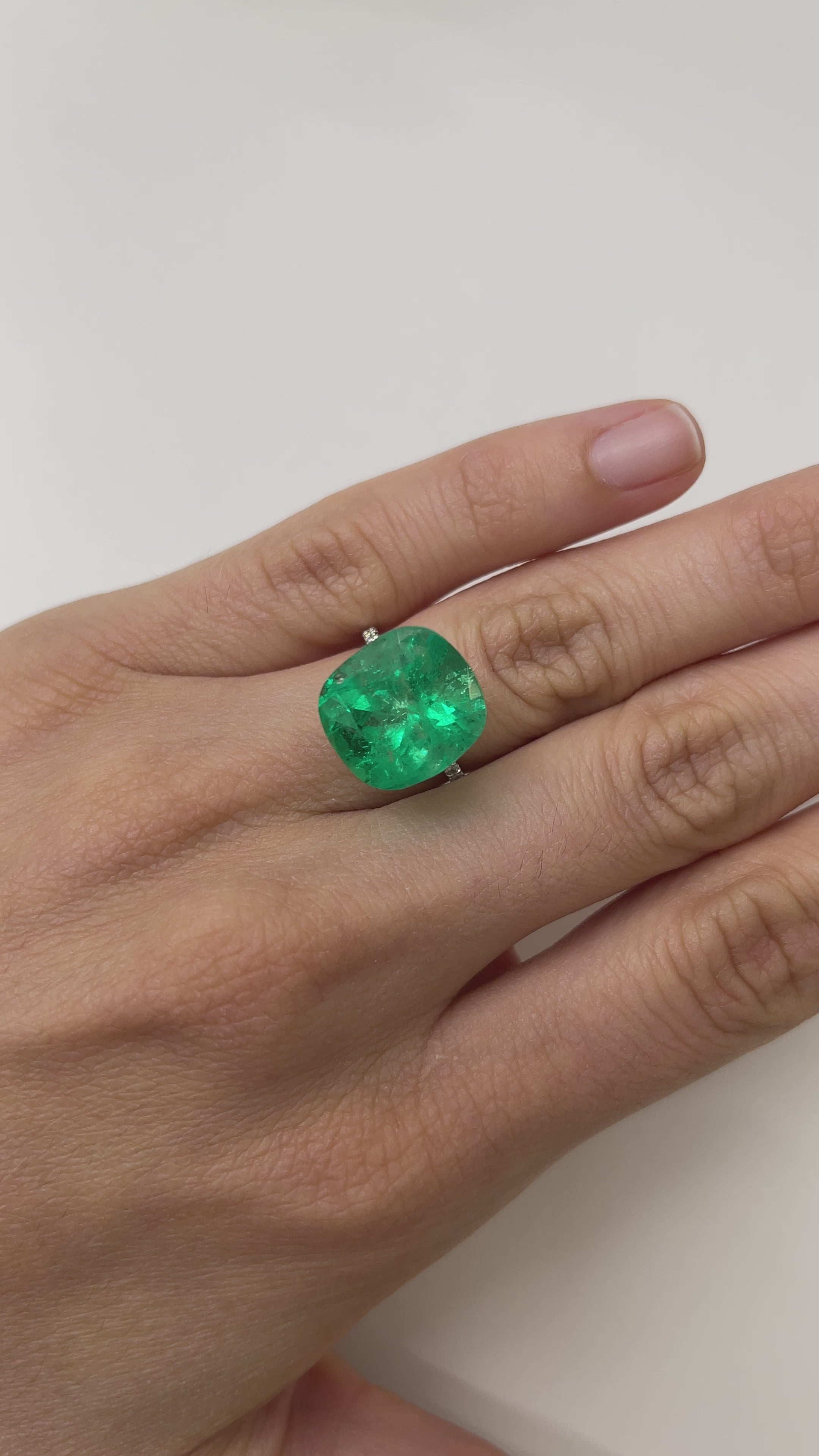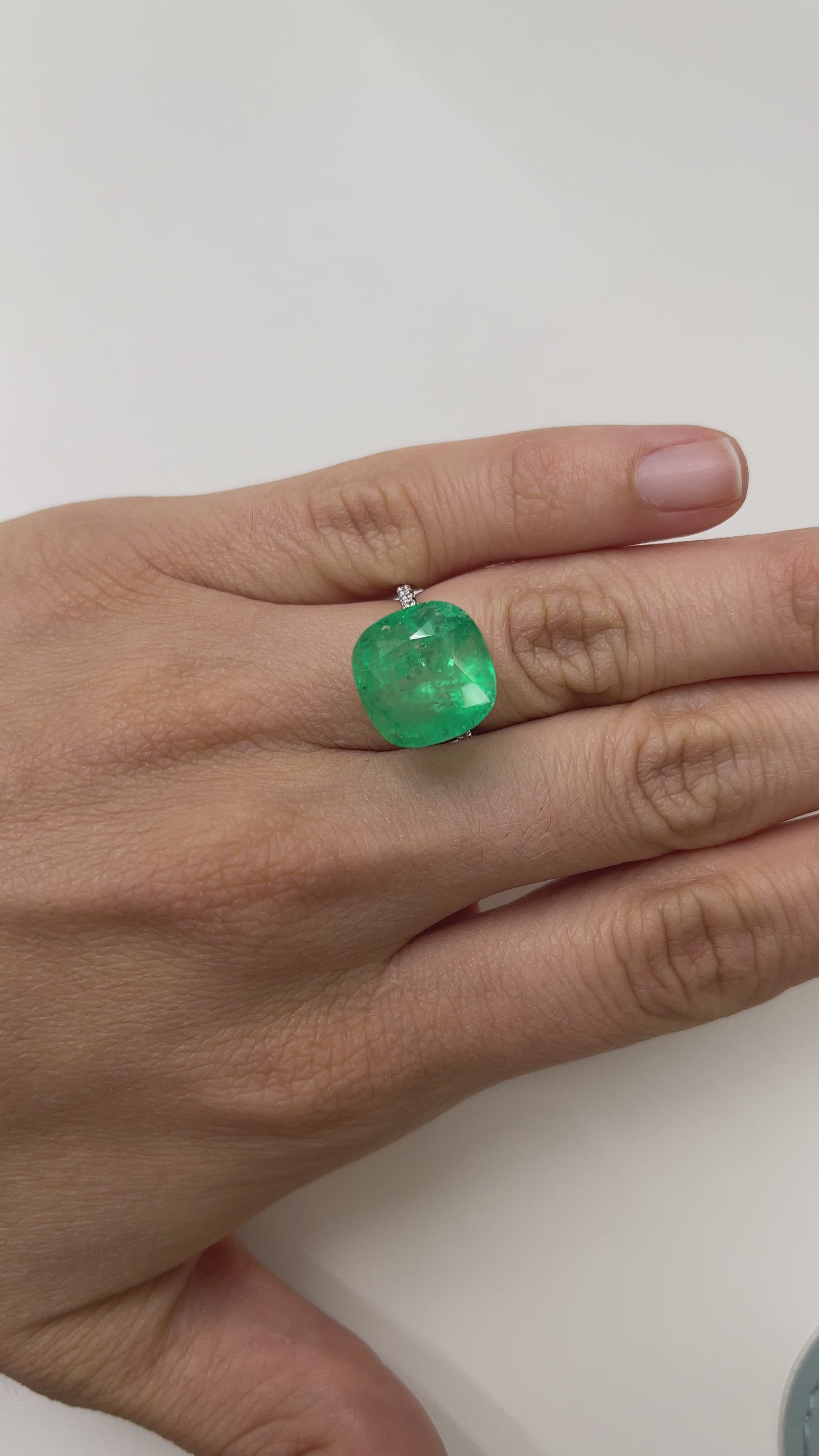 Large 12.66 Carat Natural Cushion Colombian Emerald, 14x14 Emerald Cushion Cut