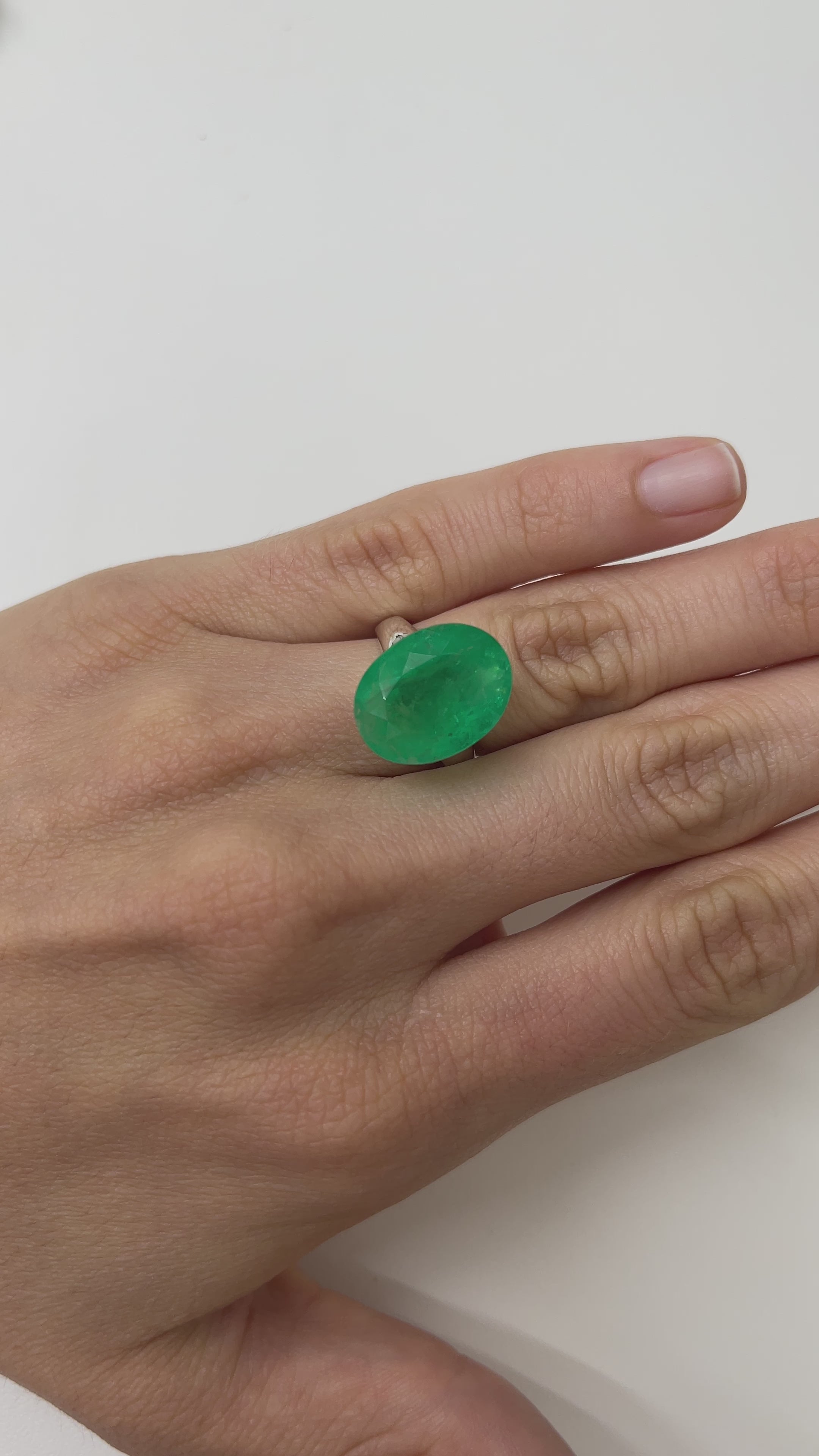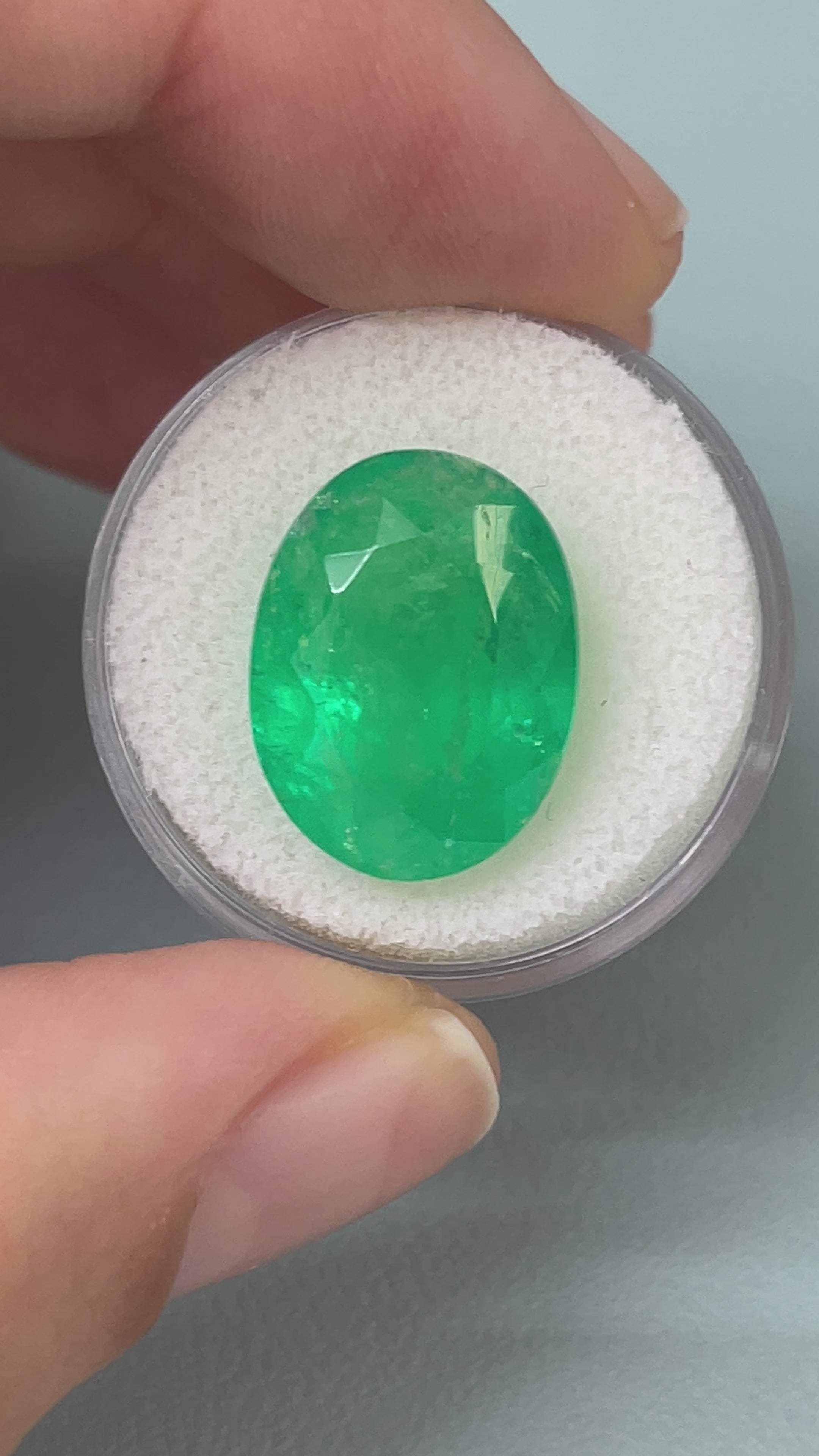 Large 14.72 Carat 17.4x13.3 Grassy Green Natural Loose Colombian Emerald-Oval Cut