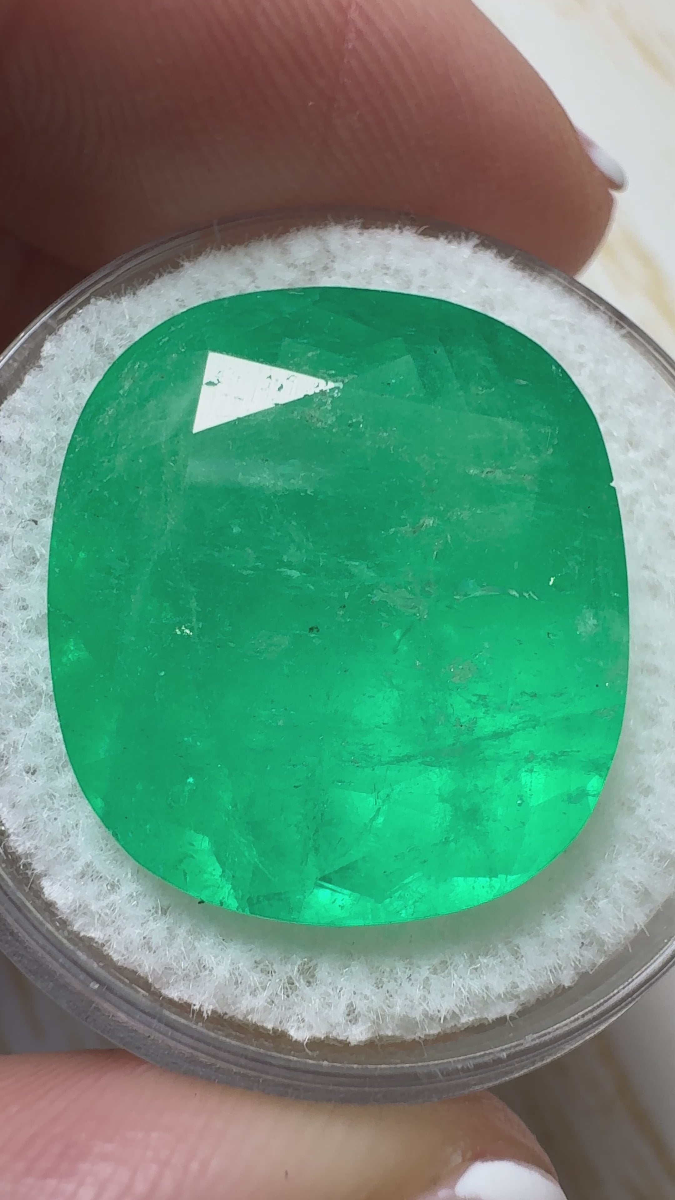 Large 19.63 Carat 18.6x17 Chunky Green Natural Loose Colombian Emerald-Cushion Cut