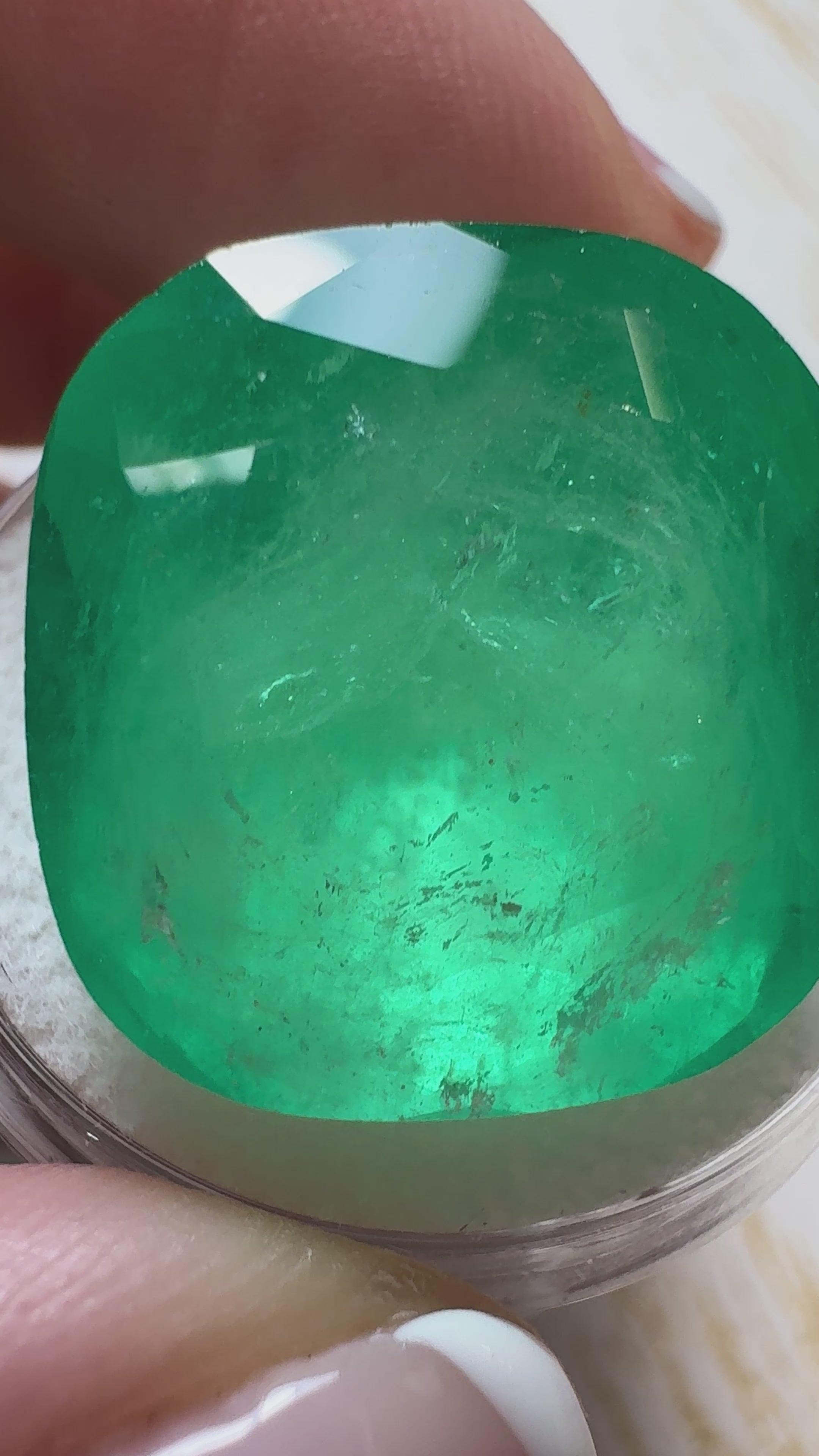 Large 30.43 Carat 19x18 Spring Green Natural Loose Colombian Emerald-Cushion Cut
