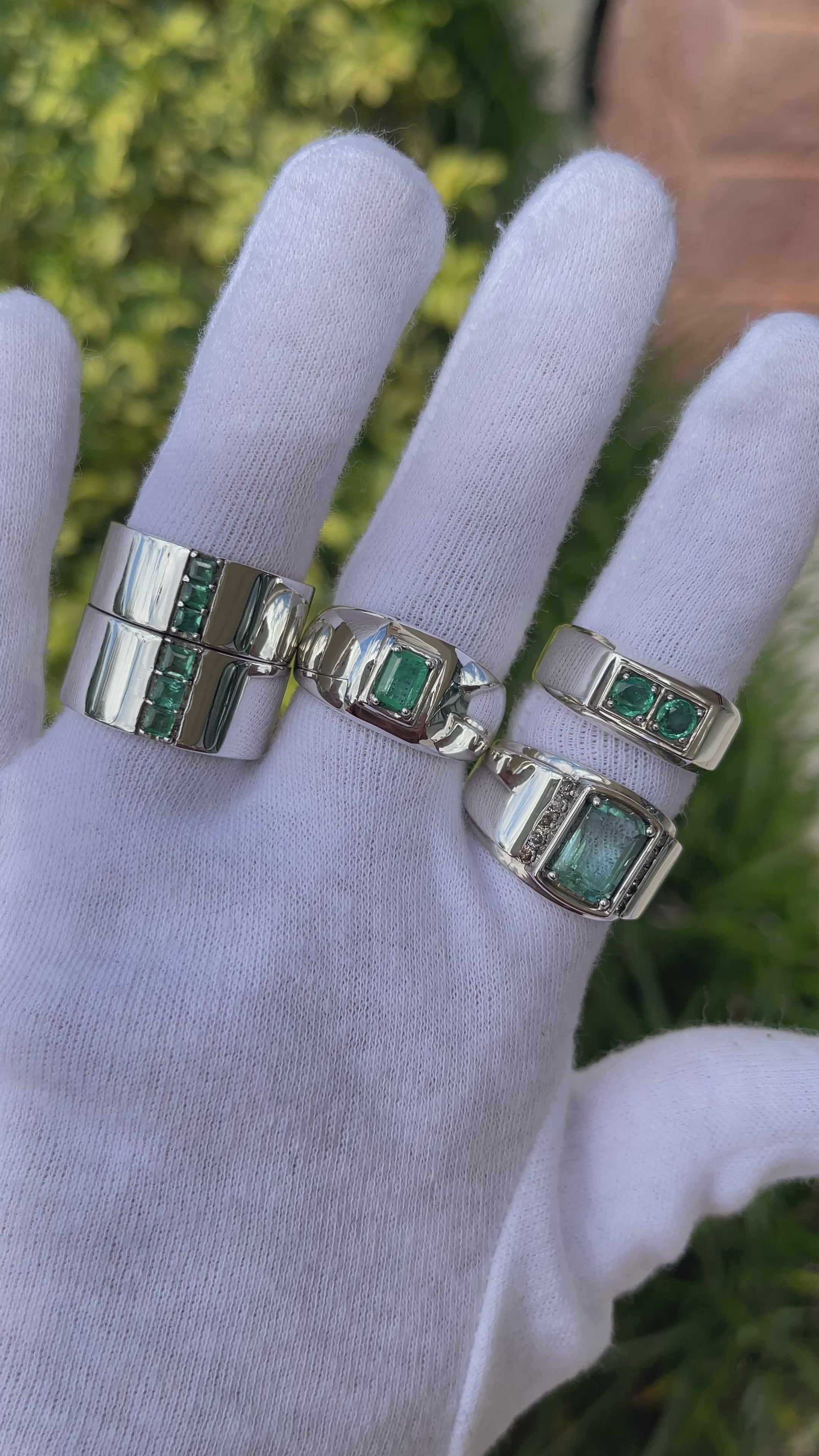 Each mens ring shown is set in .925 Sterling silver and features a natural, earth mined emerald(s).
