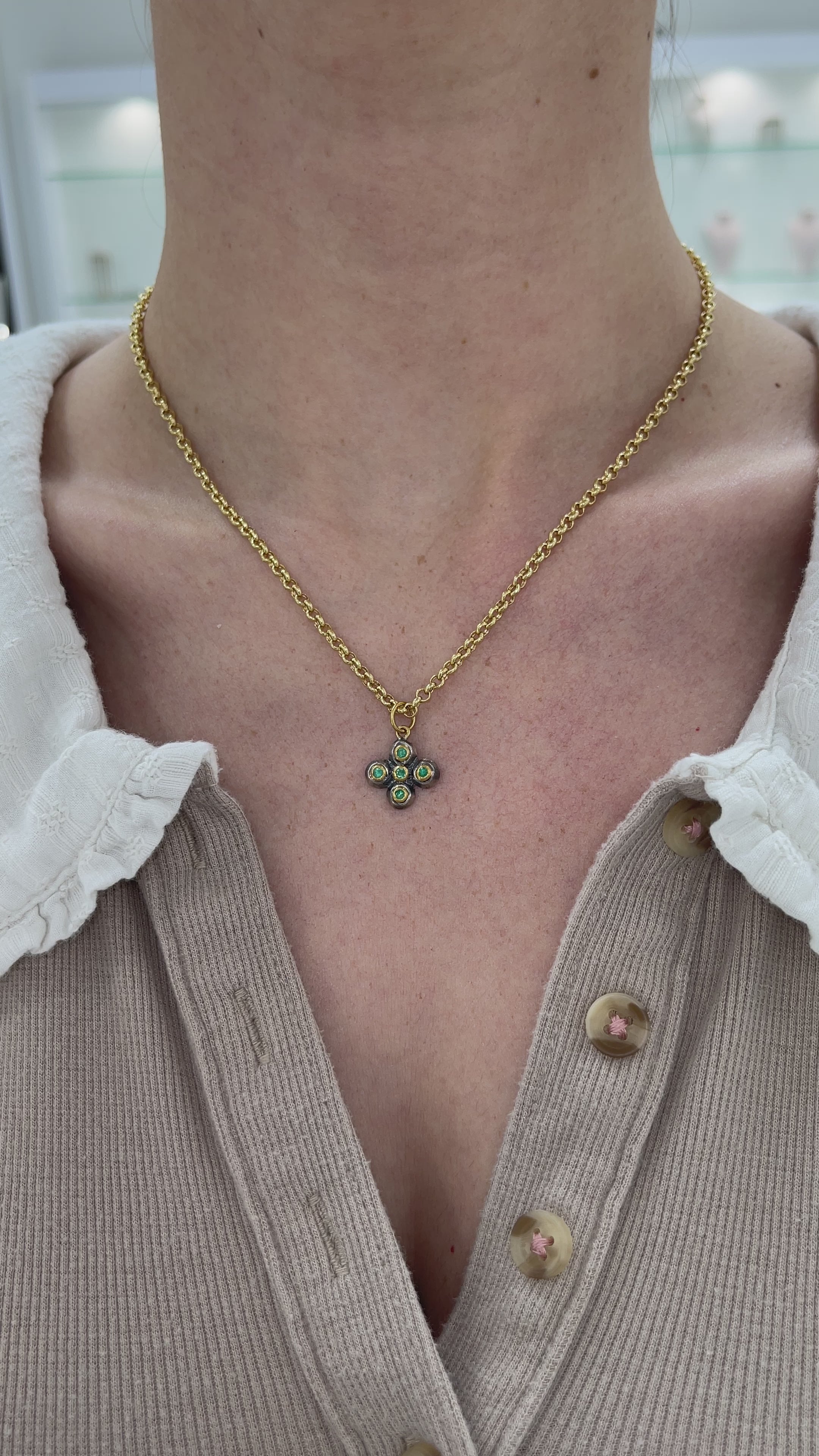 Petite Byzantine 24K Gold & Sterling Silver Emerald Cross Pendant